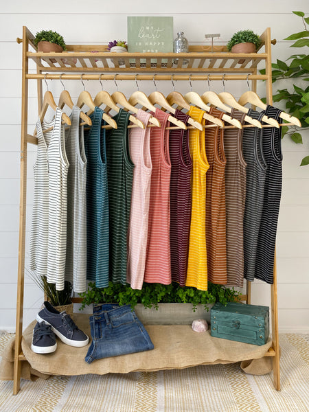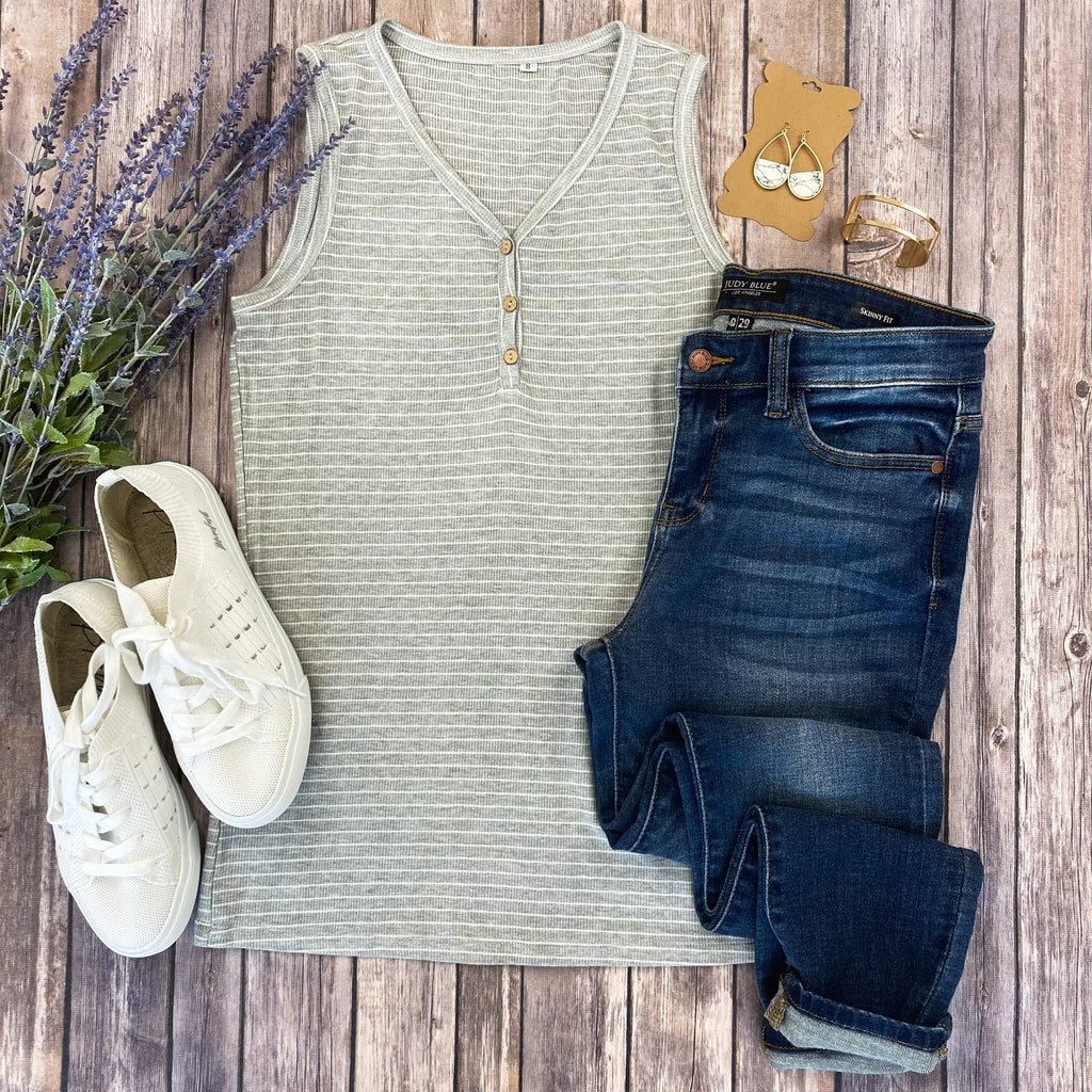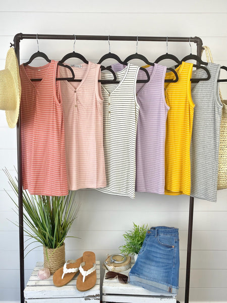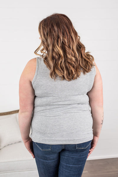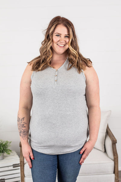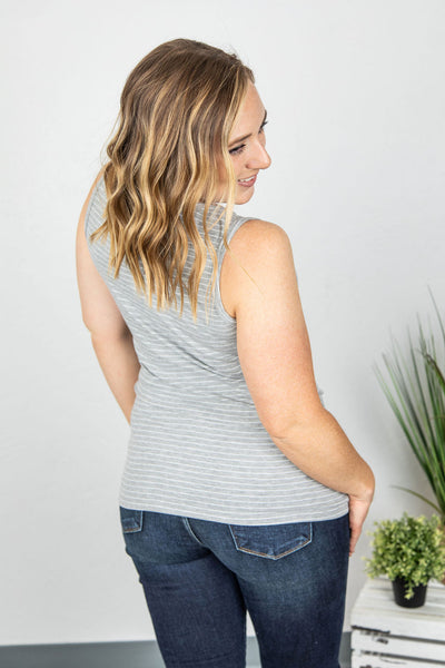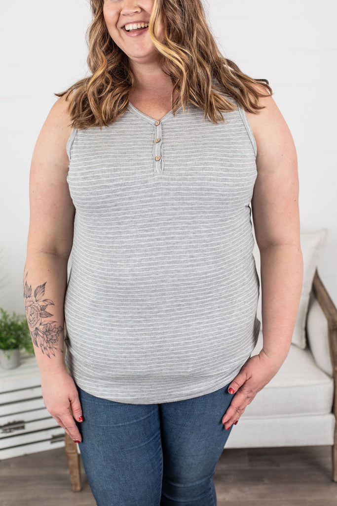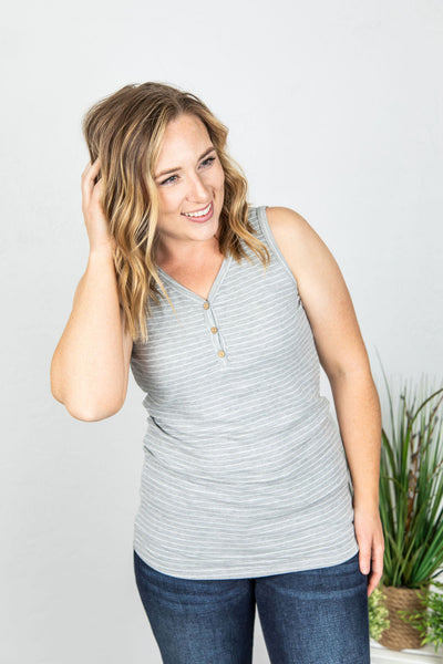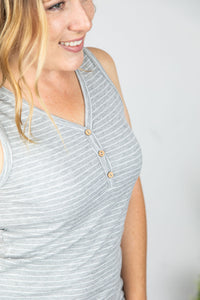 Addison Henley Tank - Grey and White Stripes