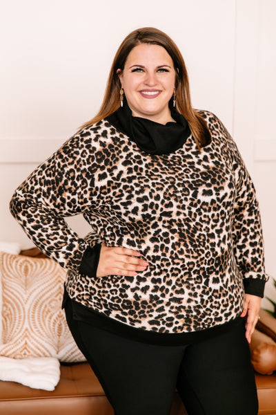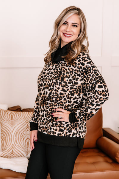 Cowl necks are some of our most favorite necklines, we just love to be cozy! Add to that the contrasting fabric at the neck and cuff details as well as the trendy leopard print? You've got us completely sold.