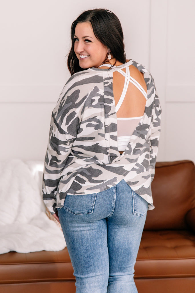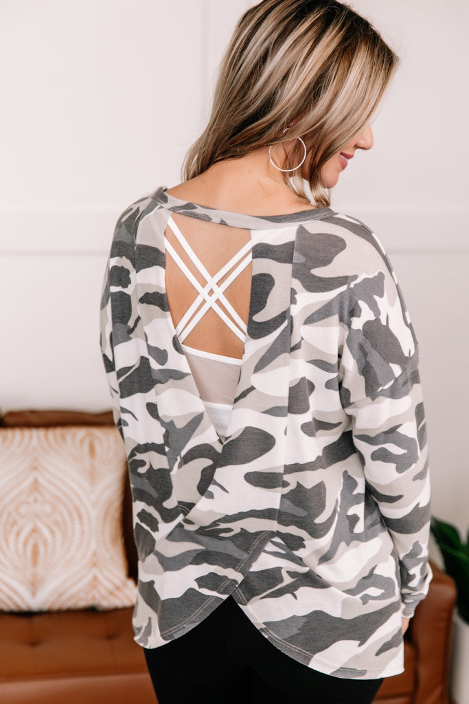 Plain old camo certainly has its place, but if you want to up your game, we suggest adding tops like this to your wardrobe. Of course, the trendy print will always be our favorite, but when you add in the fun back detail of this green and oatmeal gem, we know it will be a favorite for seasons to come.