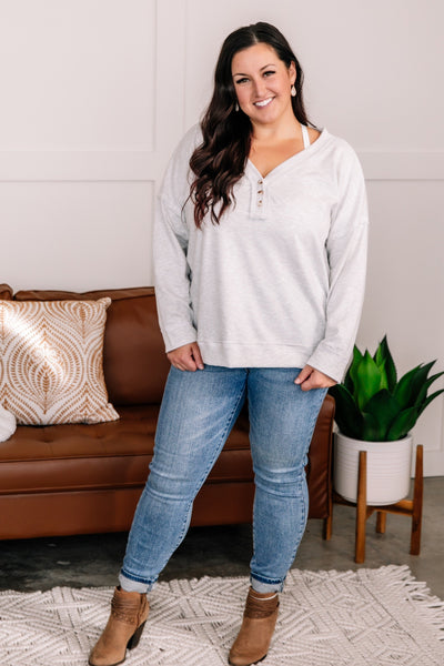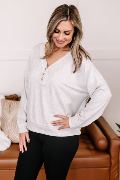 OUTLET - Long Story Short Fleece Henley Top - Large