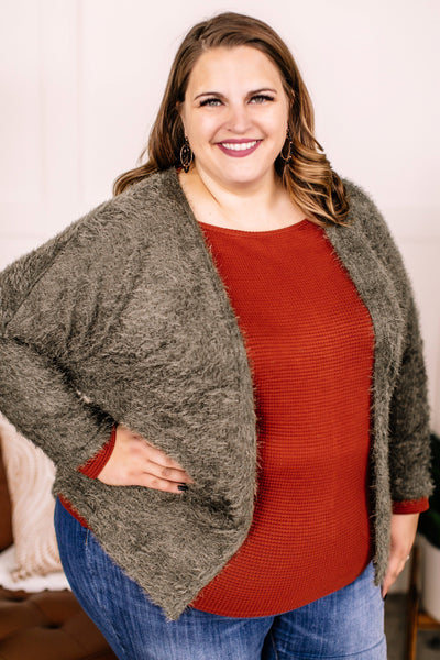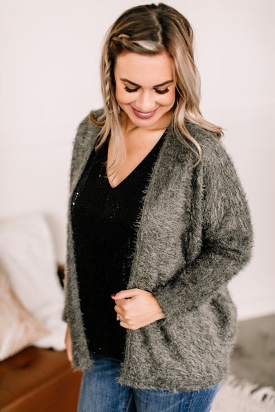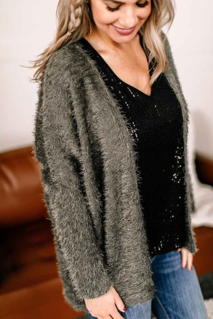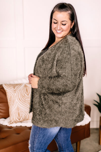OUTLET - Stay With Me Feather Cardigan In Olive - Large