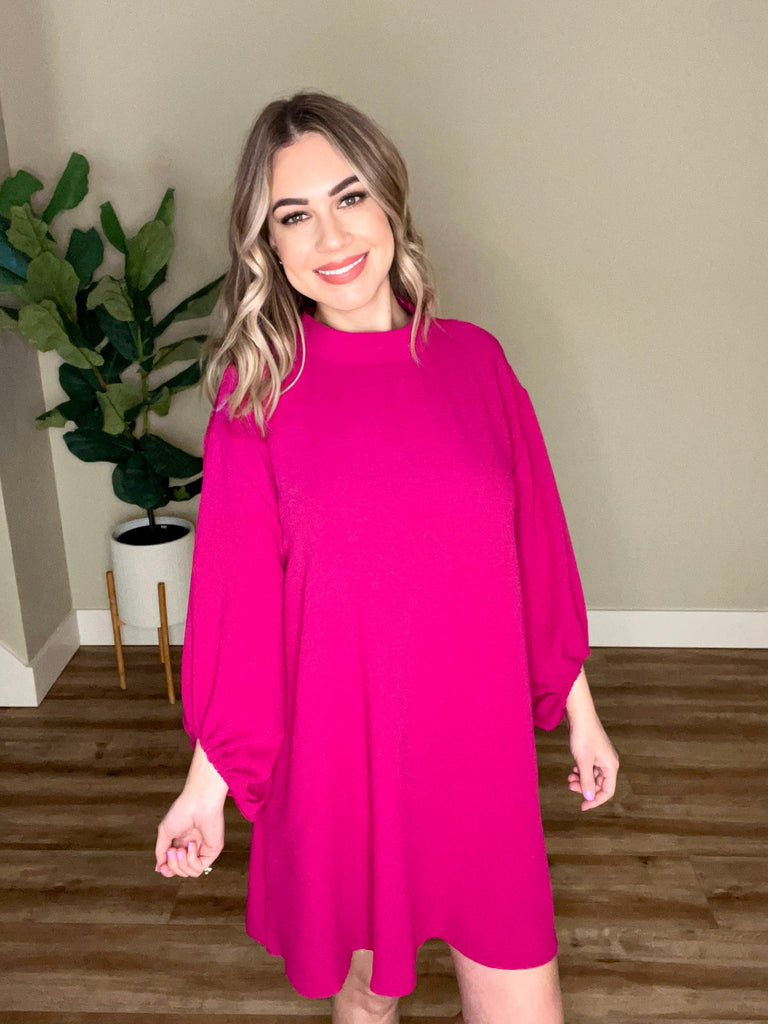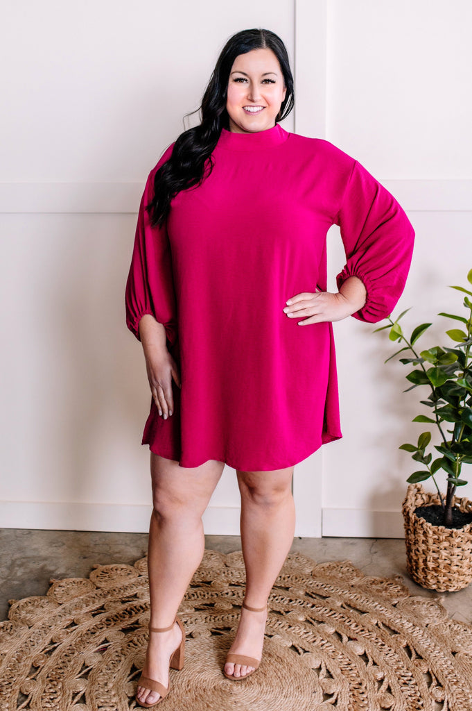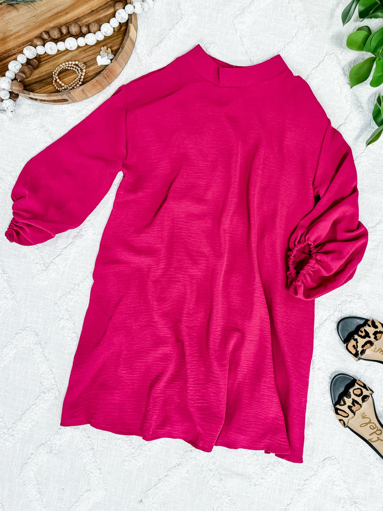 1.17 Mock Neck Long Sleeve Blouse Dress In Deep Magenta