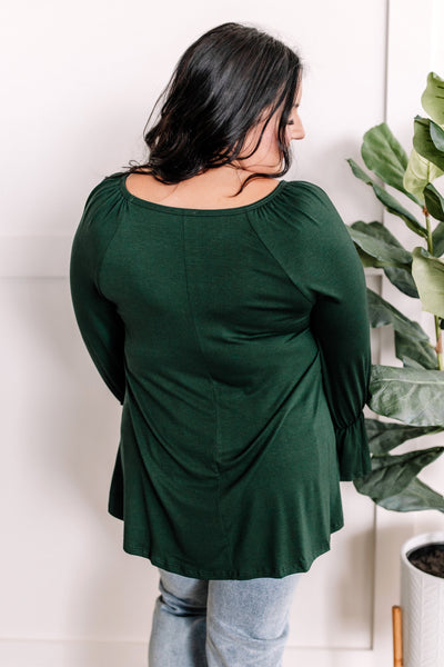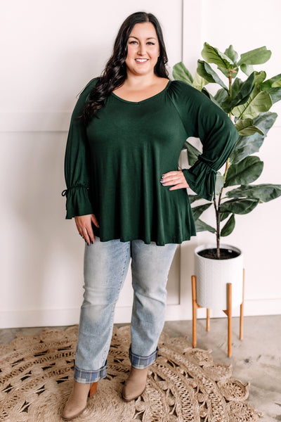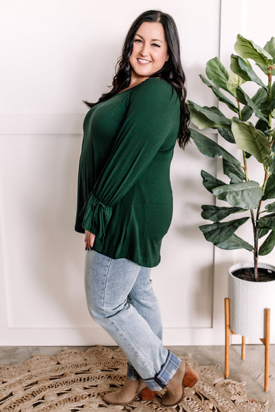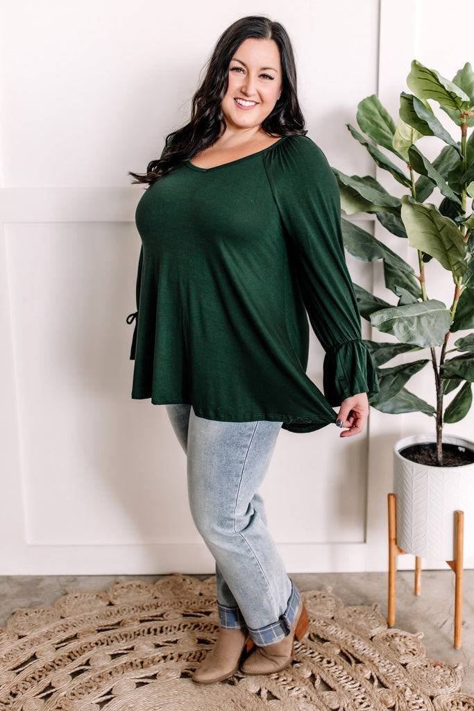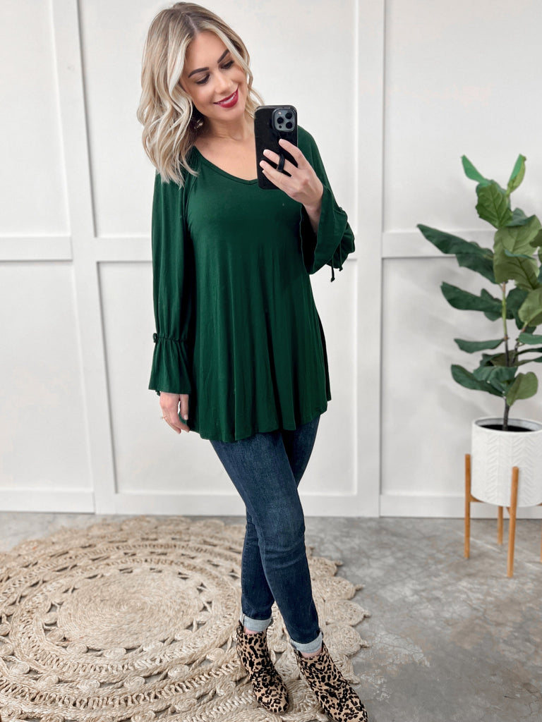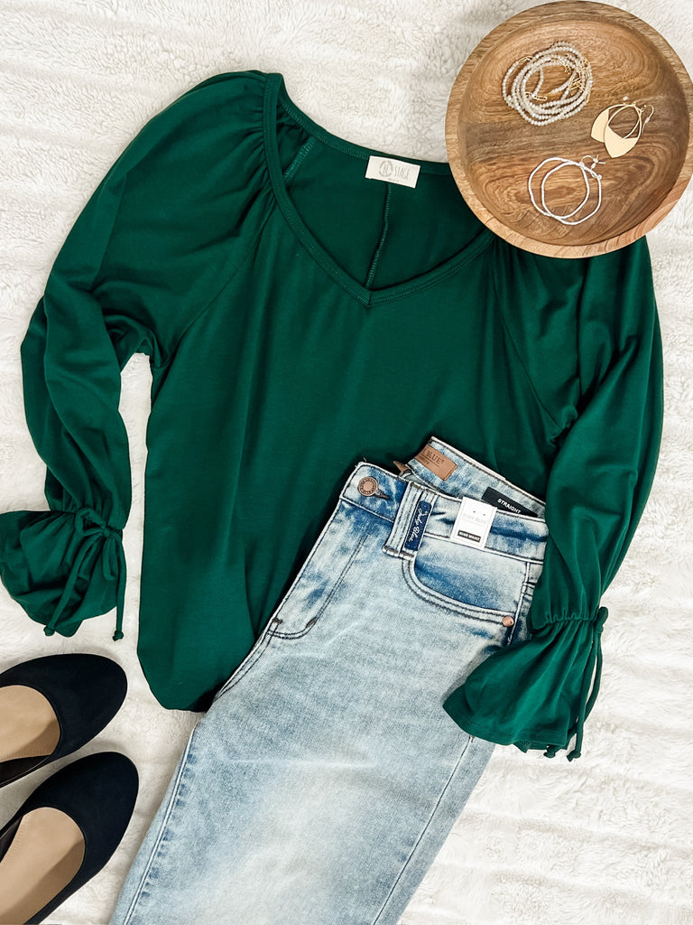 Tie Sleeve V Neck Top In Rich Pine Grove