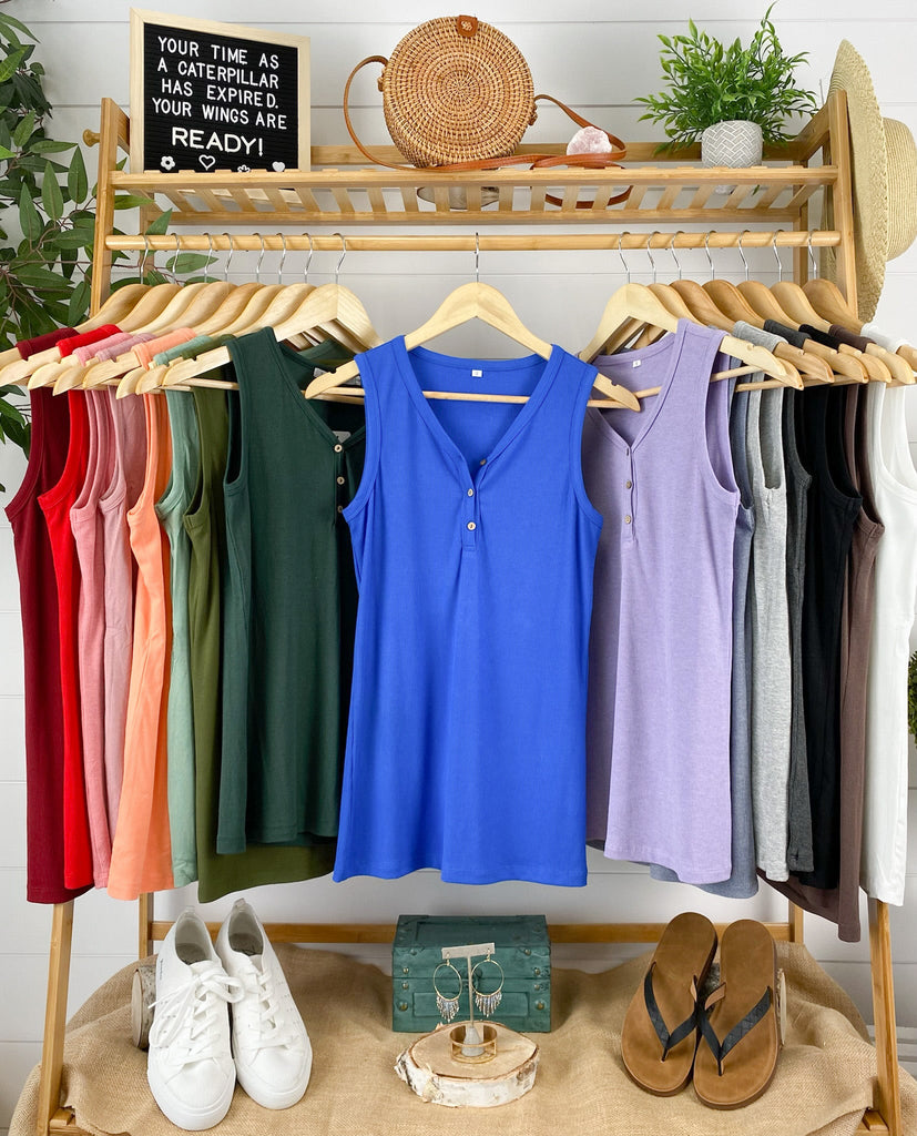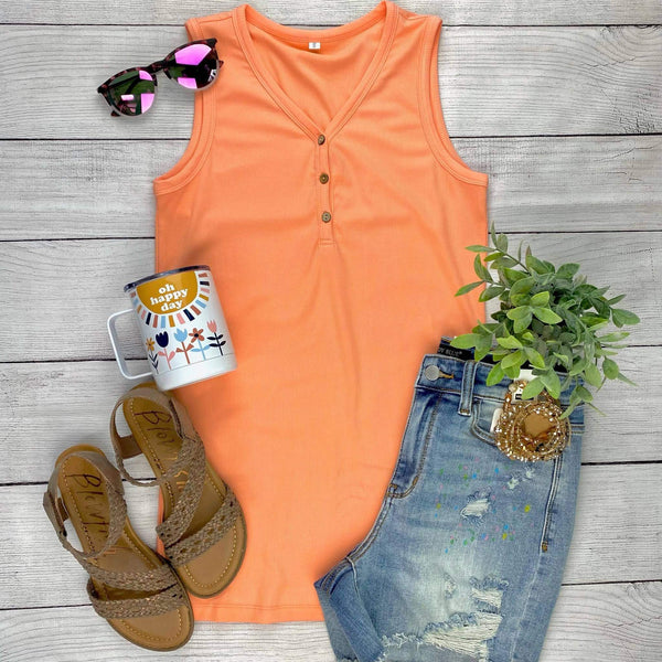 Our Addison Tank is the softest base layering piece you'll ever feel! With a sweet, and functioning button detail, this tank top is sure to work in your closet all year round. Pair it with shorts in the heat, or a cozy cardigan on cooler days.