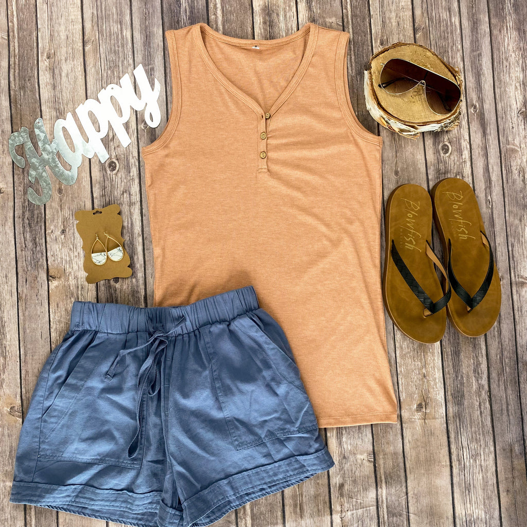 Our Addison Tank is the softest base layering piece you'll ever feel! With a sweet, and functioning button detail, this tank top is sure to work in your closet all year round. Pair it with shorts in the heat, or a cozy cardigan on cooler days.