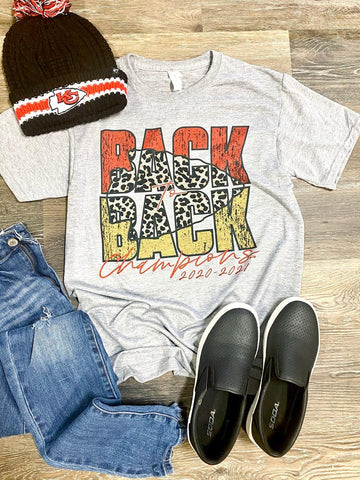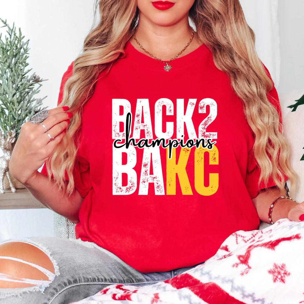 Get ready to celebrate the Chiefs' back-to-back Superbowl championships with this awesome BACK2BACK CHAMPIONS t-shirt! Show off your team pride and join the dynasty with this fun and playful shirt that commemorates their victory x2. Don't miss out on this must-have item for any Chiefs fan!