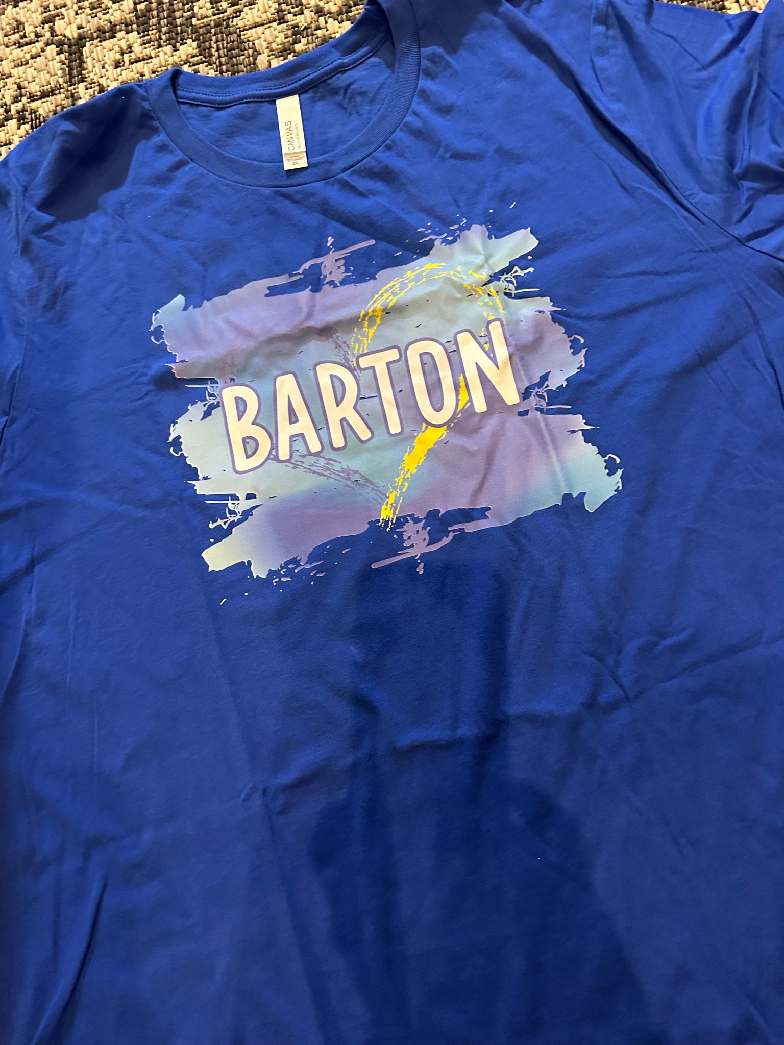 Cheer on your team and show your pride in style with the Barton Tee! This loud and proud tee features a eye-catching Barton logo in blue and yellow to make sure you stand out in the crowd. #Winning!