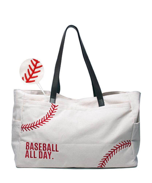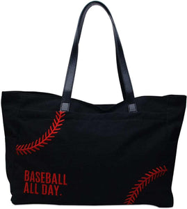 Bring your baseball A-game to the ballpark with the Baseball All Day Bag! This white or black bag is perfect for long days of cheering on your team – no matter how late the game runs. Show your team spirit in style! Go team go!