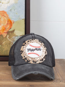 Baseball Mama Glitter Leopard Patch on Black Glitter Bill Hat