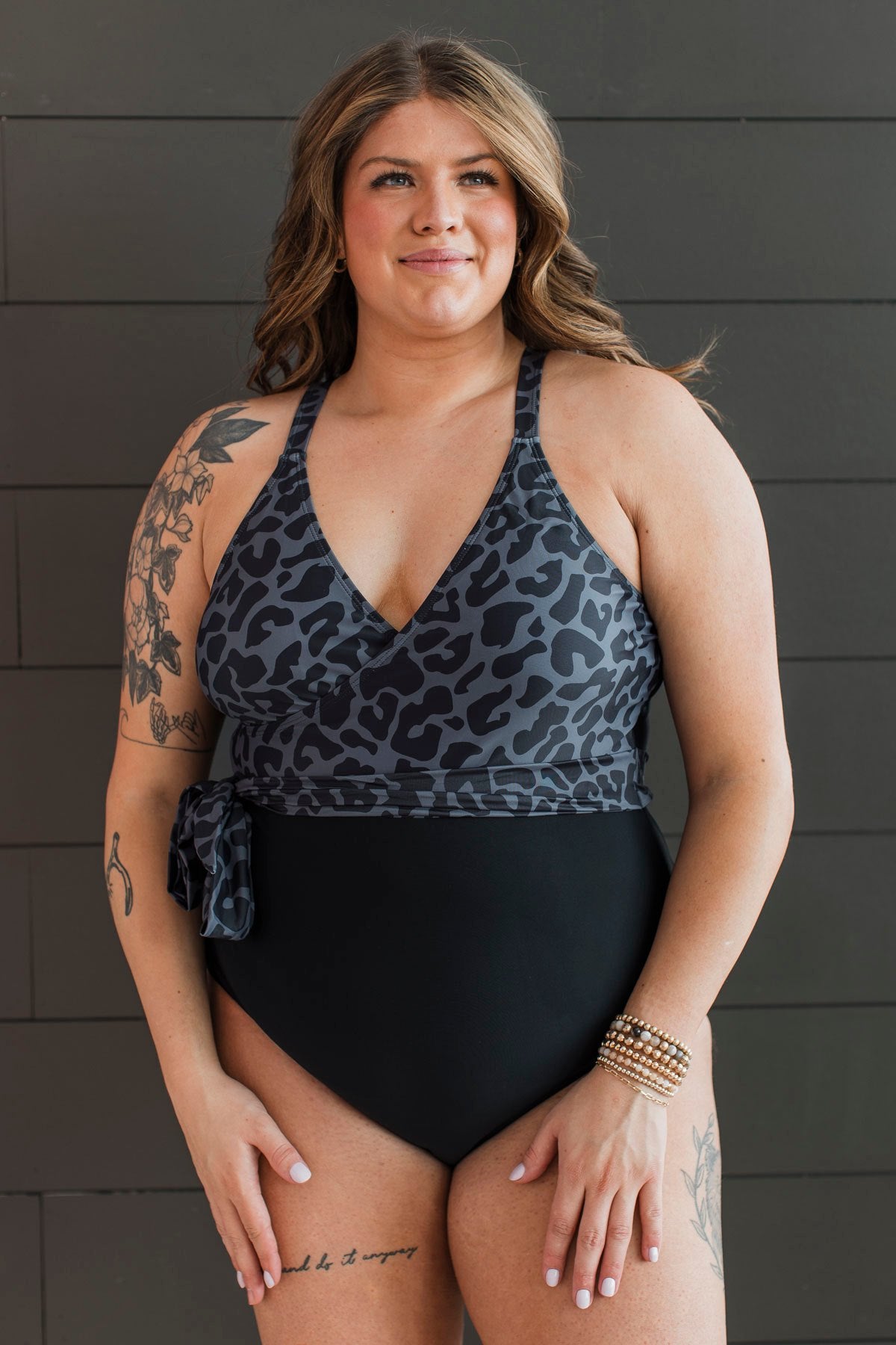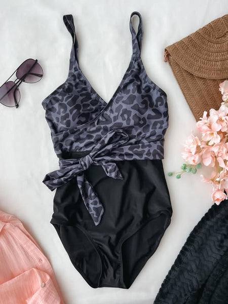 Beach Party One-Piece Swimsuit- Charcoal Leopard Print