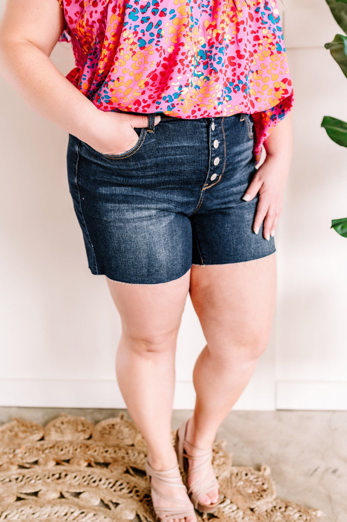Button Fly Cut Off Judy Blue Jean Shorts In Dark Wash