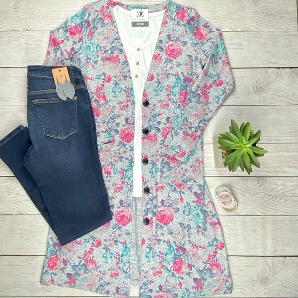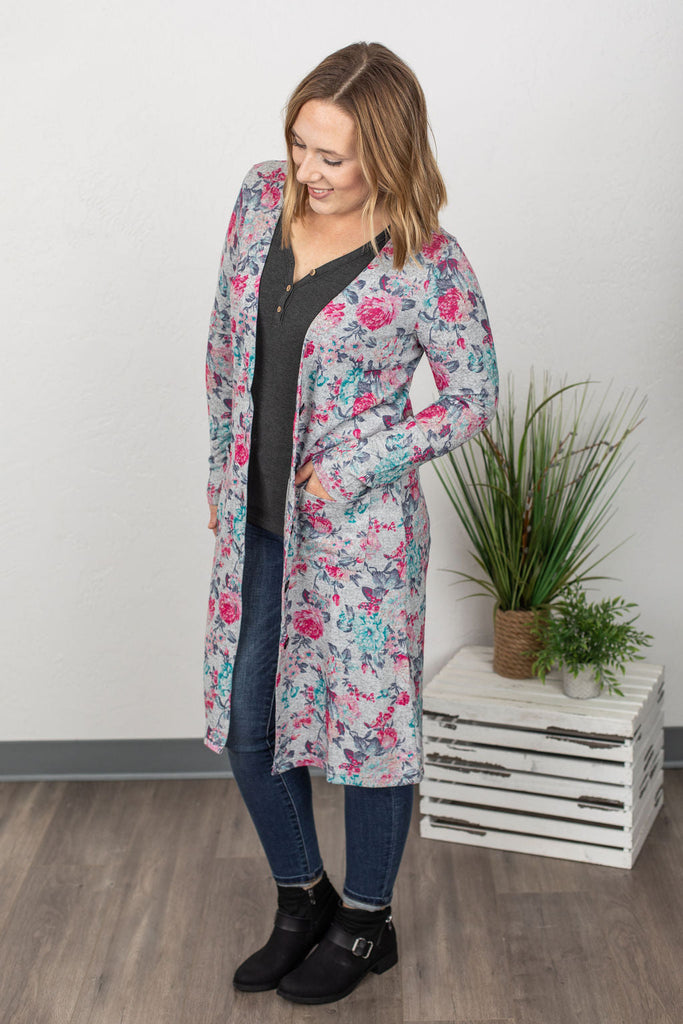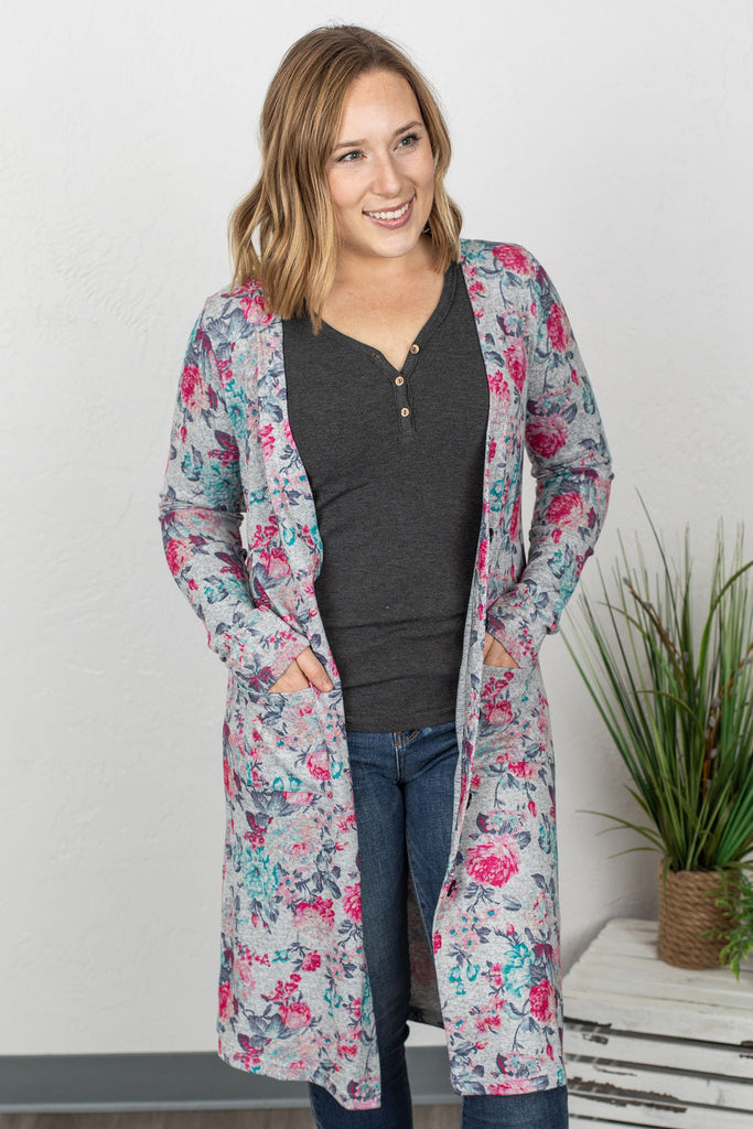 This cardigan is going to become your new go-to item to pair with everything in your closet! Longer than a traditional cardigan, but not quite full-length like a duster, we think this length is perfect! Plus, its so soft and has pockets, you'll never want to take it off!