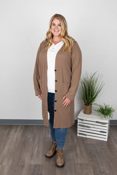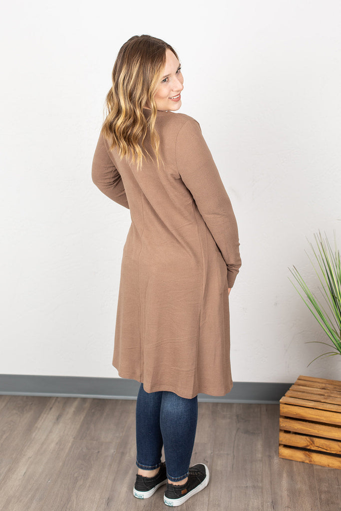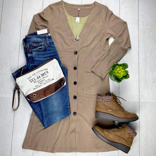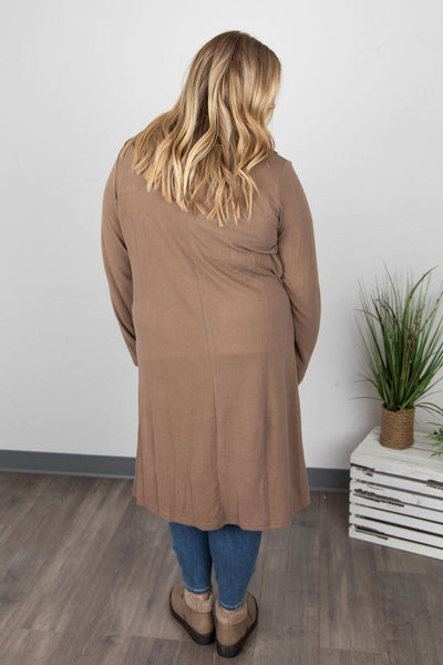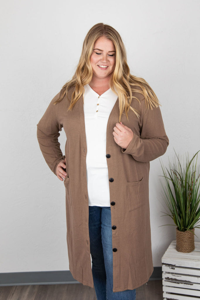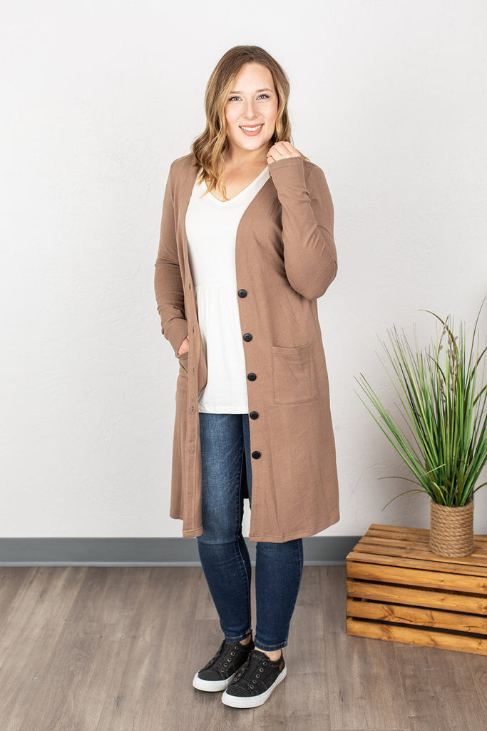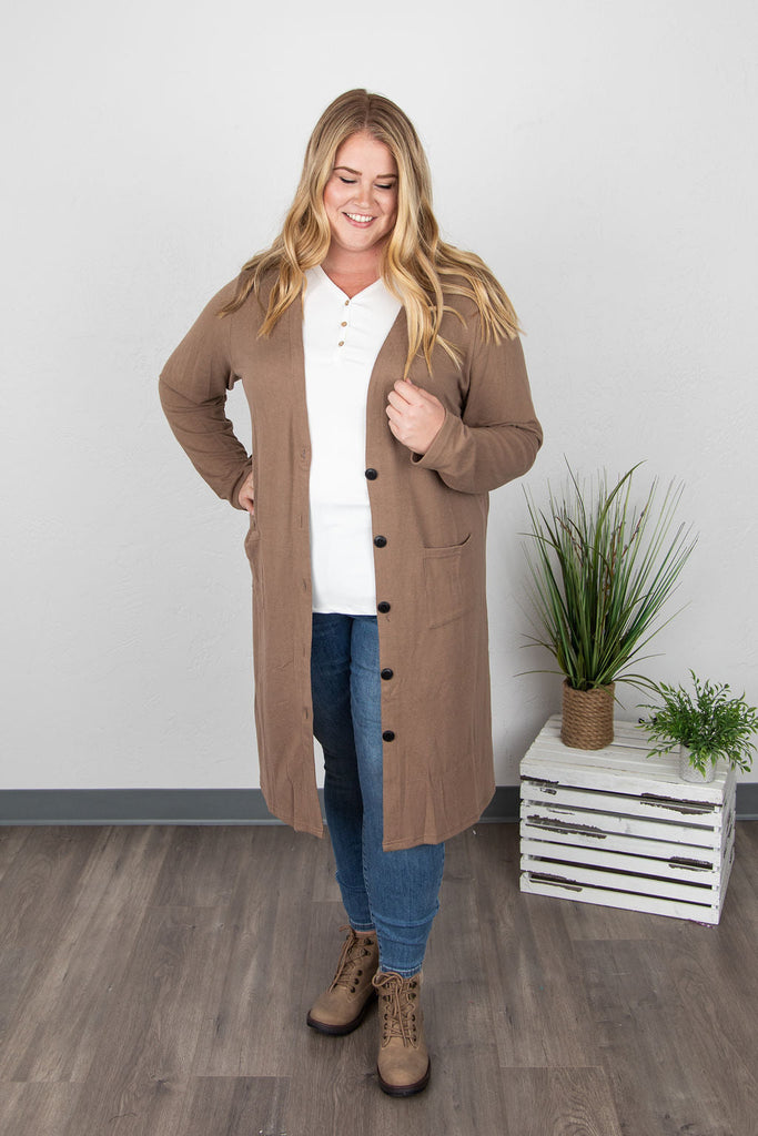 This cardigan is going to become your new go-to item to pair with everything in your closet! Longer than a traditional cardigan, but not quite full-length like a duster, we think this length is perfect! Plus, its so soft and has pockets, you'll never want to take it off!