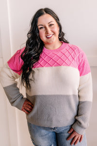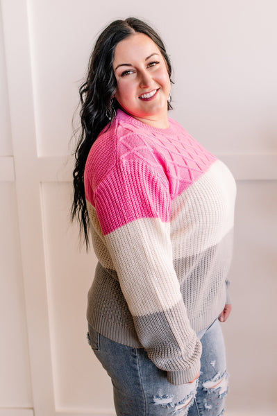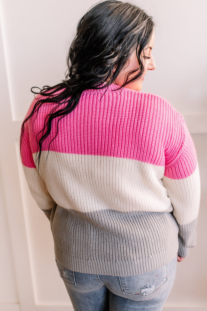 Colorblocked Woven Sweater in Pink, Gray & Ivory