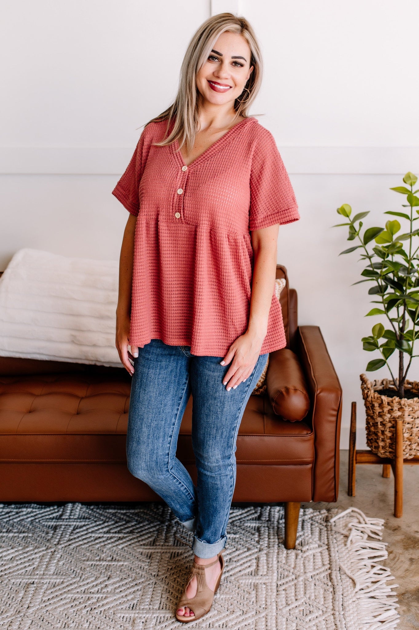 Come Up Short Waffle Knit Top In Soft Rose
