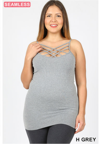 Seamless cami that adds a little flare to any outfit. Can be worn by itself or with a layering piece