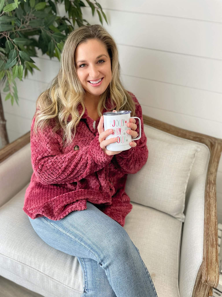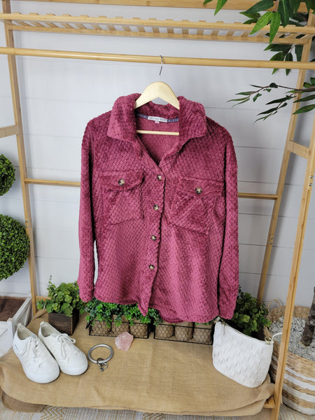 IN STOCK Fleece Shacket - Burgundy