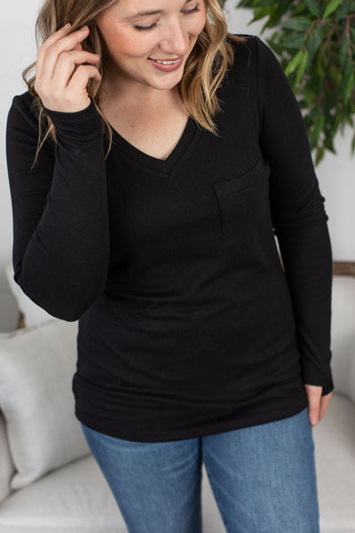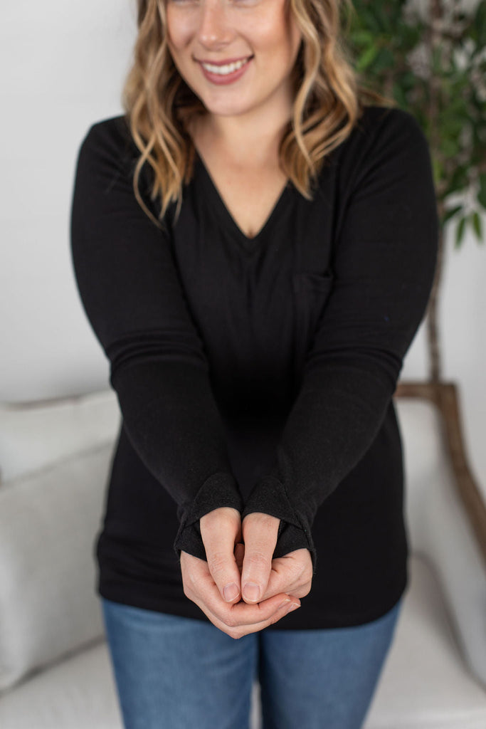 The perfect long sleeve pocket top! Amazing fabric that is warm and sure to keep you cozy during the cooler weather. These also make the perfect pairing for any vest and are super easy to layer! The are VERY soft and stretchy too, plus they have a front pocket as well as thumbholes - which we think is the perfect combination!