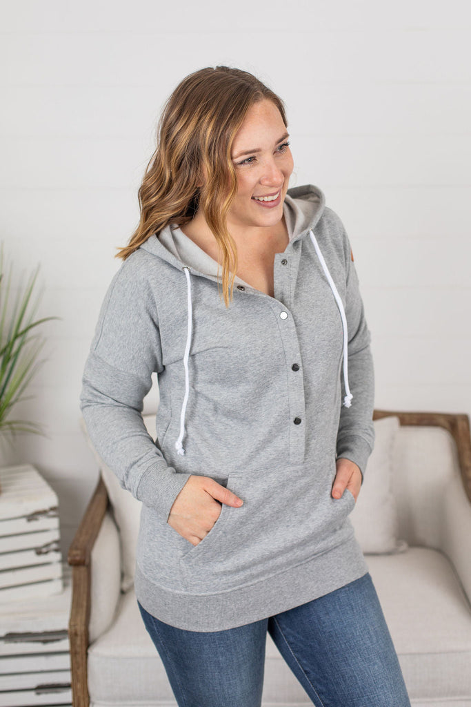 IN STOCK Hailey Button Snap Hoodie - Grey FINAL SALE