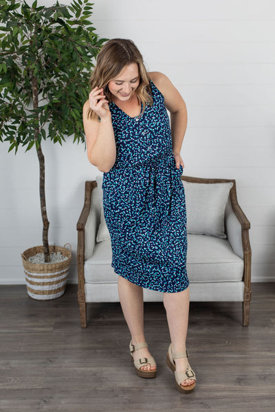 IN STOCK Sadie Dress - Navy Abstract FINAL SALE