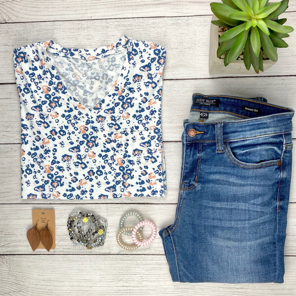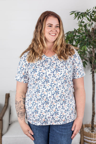 IN STOCK Sophie Classic Pocket Tee - Blue Ditsy Floral FINAL SALE