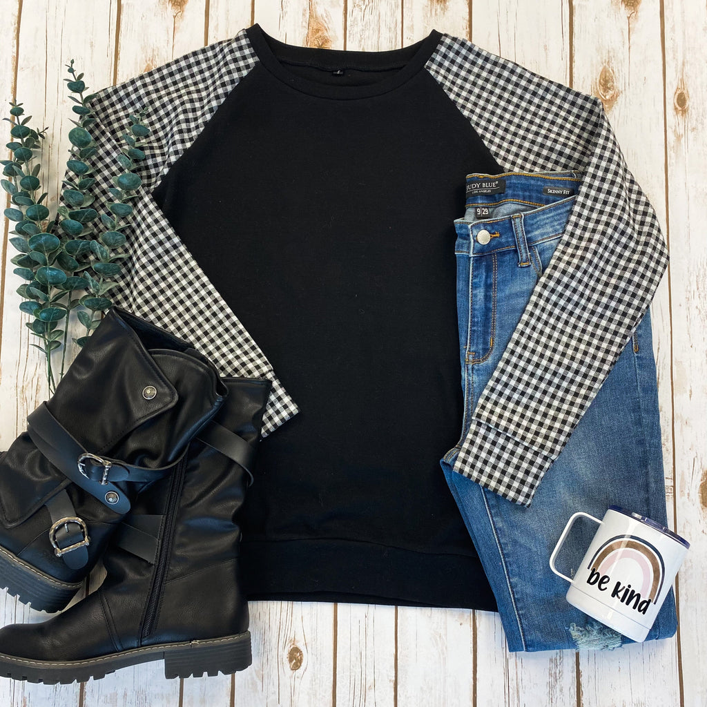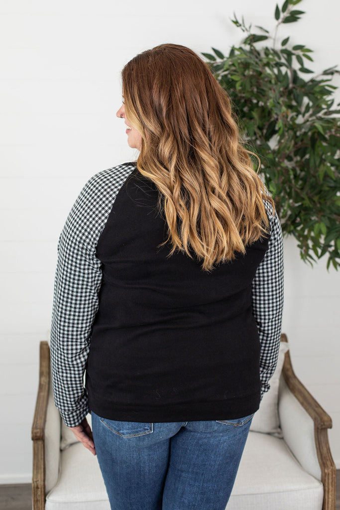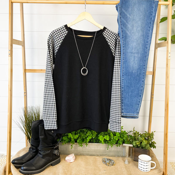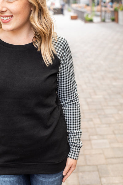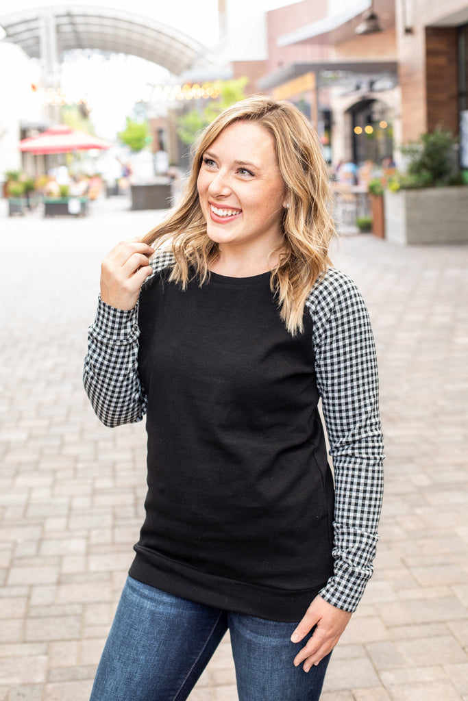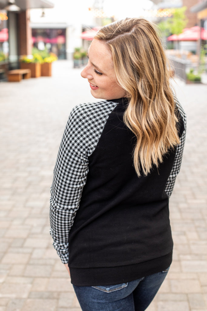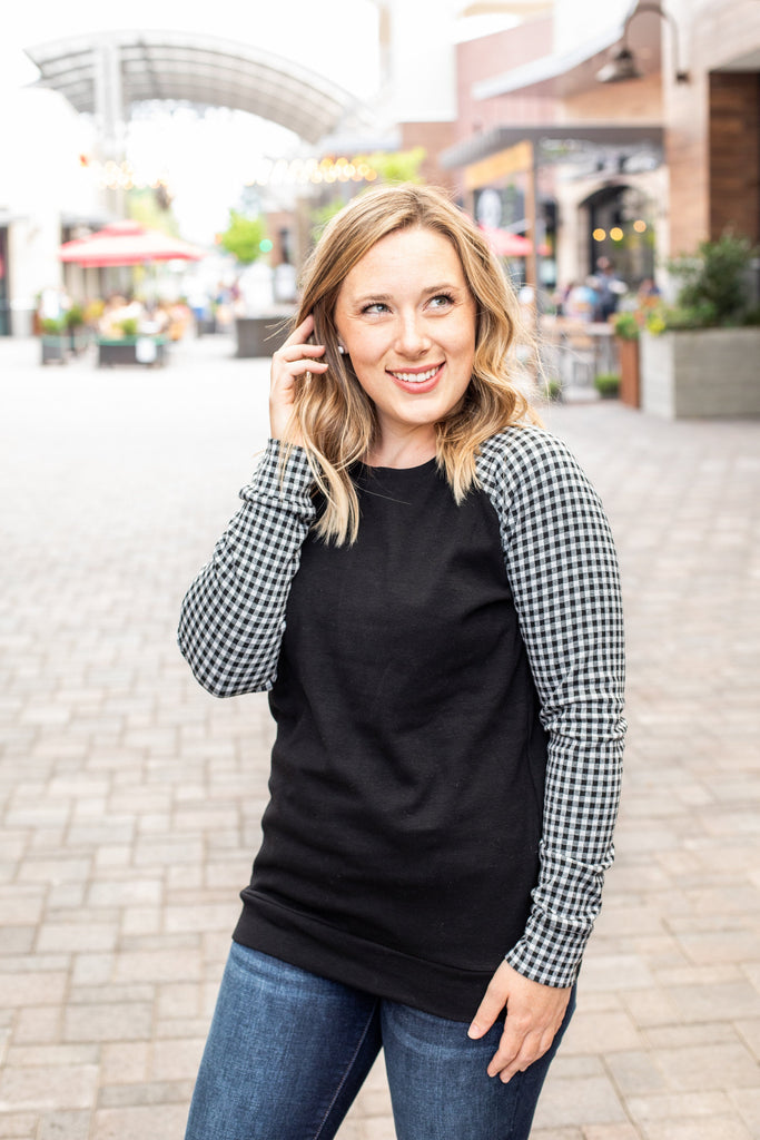 IN STOCK White and Black Gingham Sleeve Pullover FINAL SALE