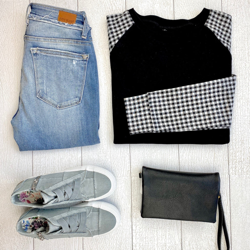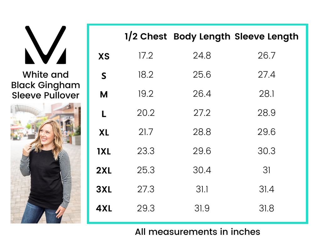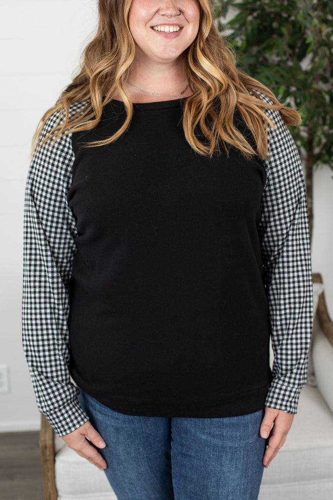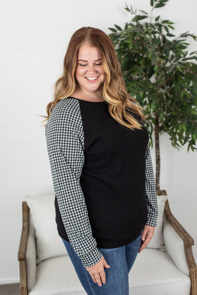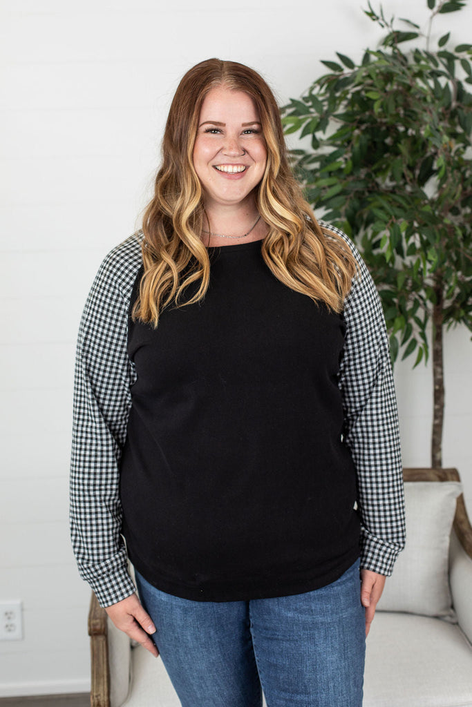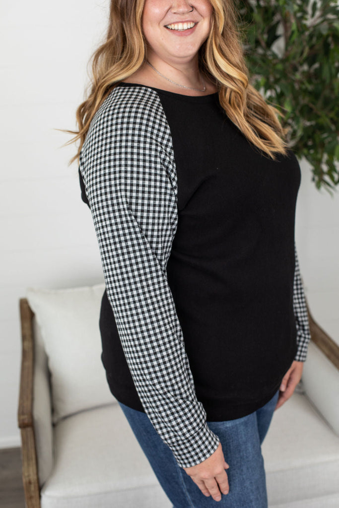 IN STOCK White and Black Gingham Sleeve Pullover FINAL SALE