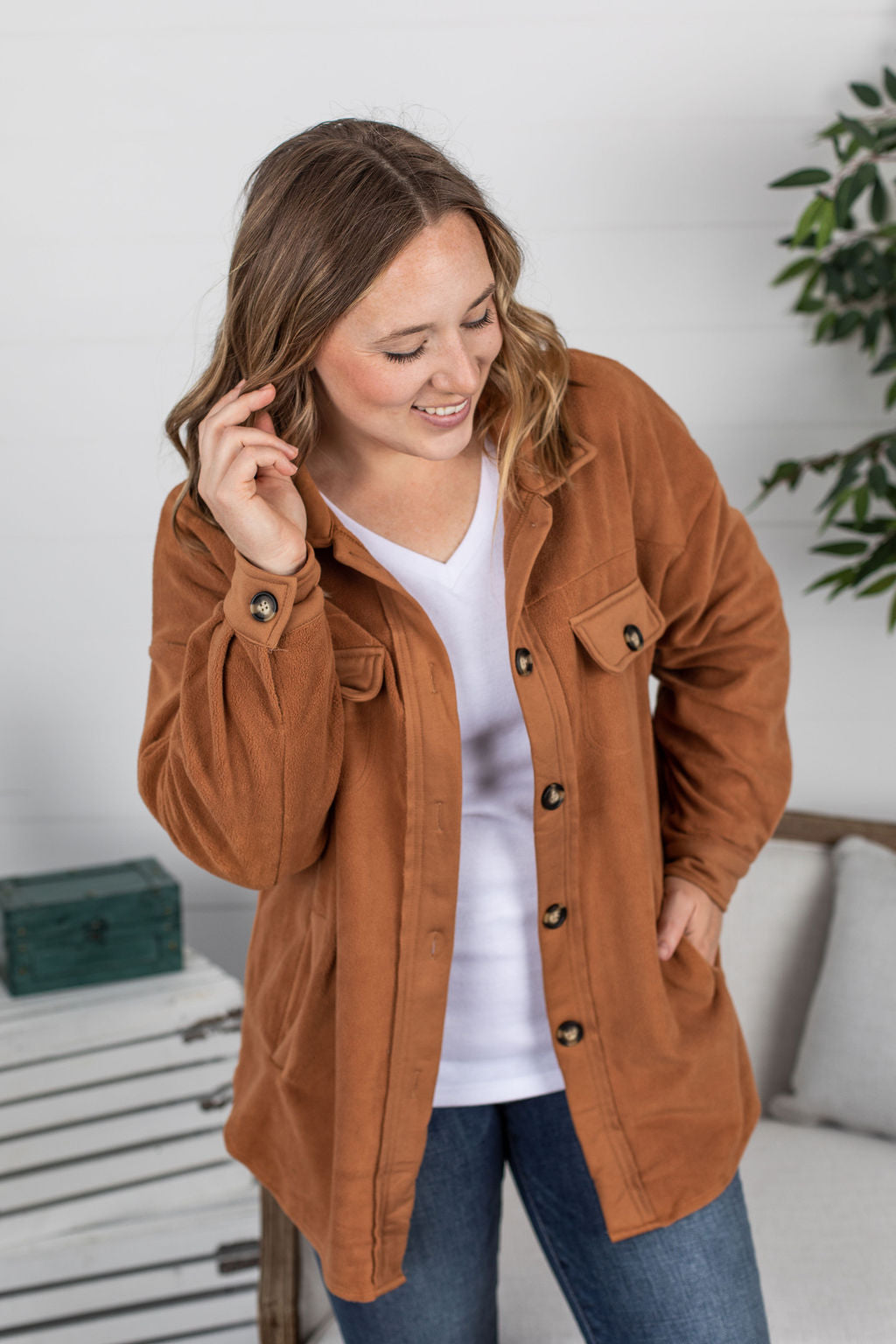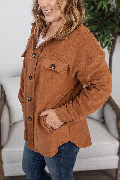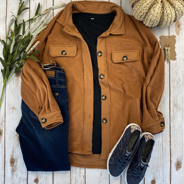 The Jordan shacket is comfy, cozy, and cute! It fits like a classic shacket, has functioning buttons, side pockets, and decorative chest pockets too! Did we mention yet how soft this is?! We also love the slight contrasting of the collar, cuffs, and pockets!