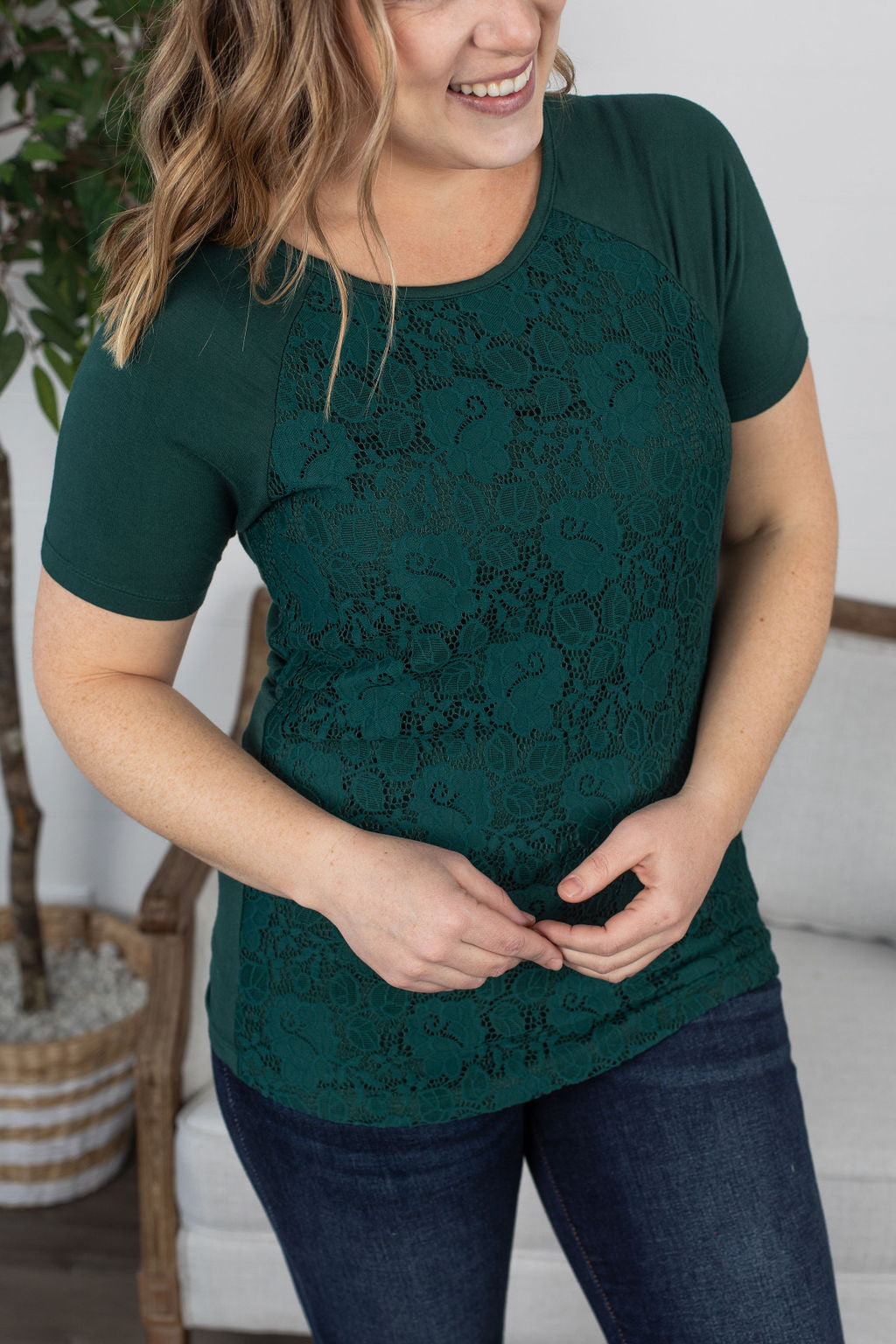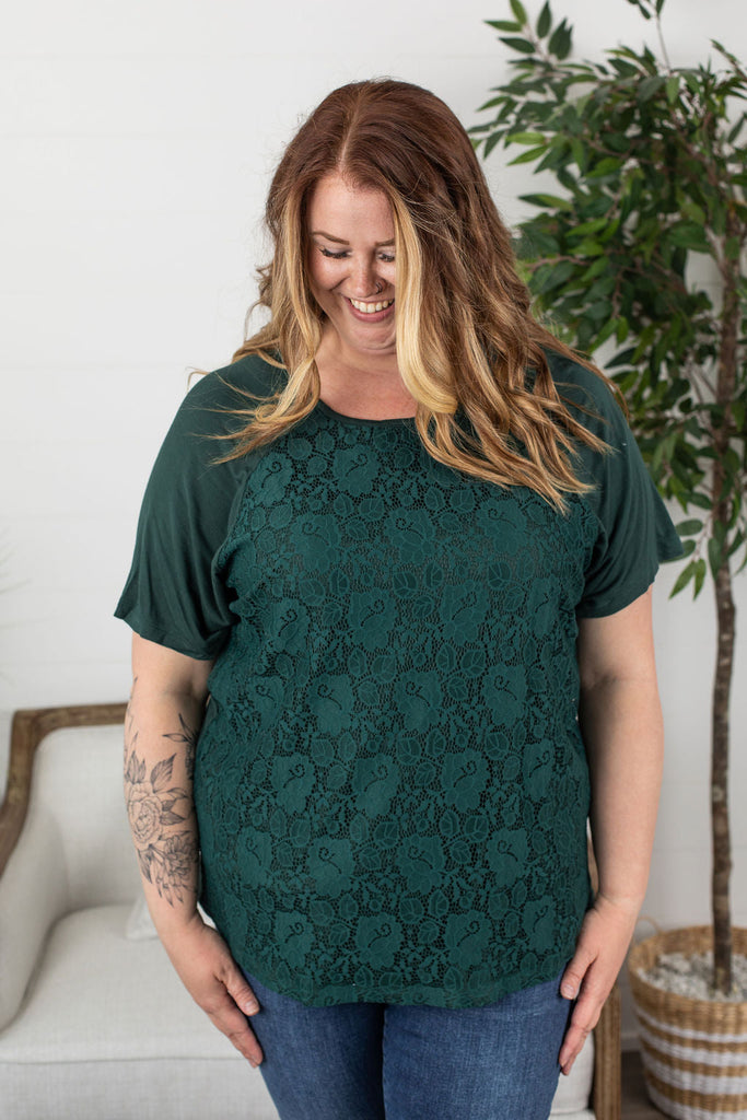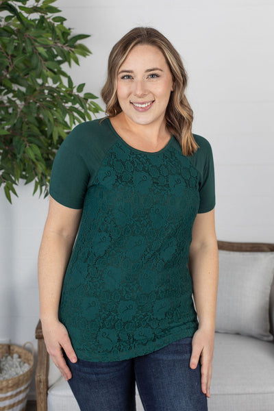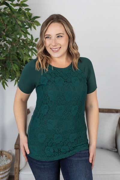 IN STOCK Juliet Lace Front Tee - Forest Green FINAL SALE