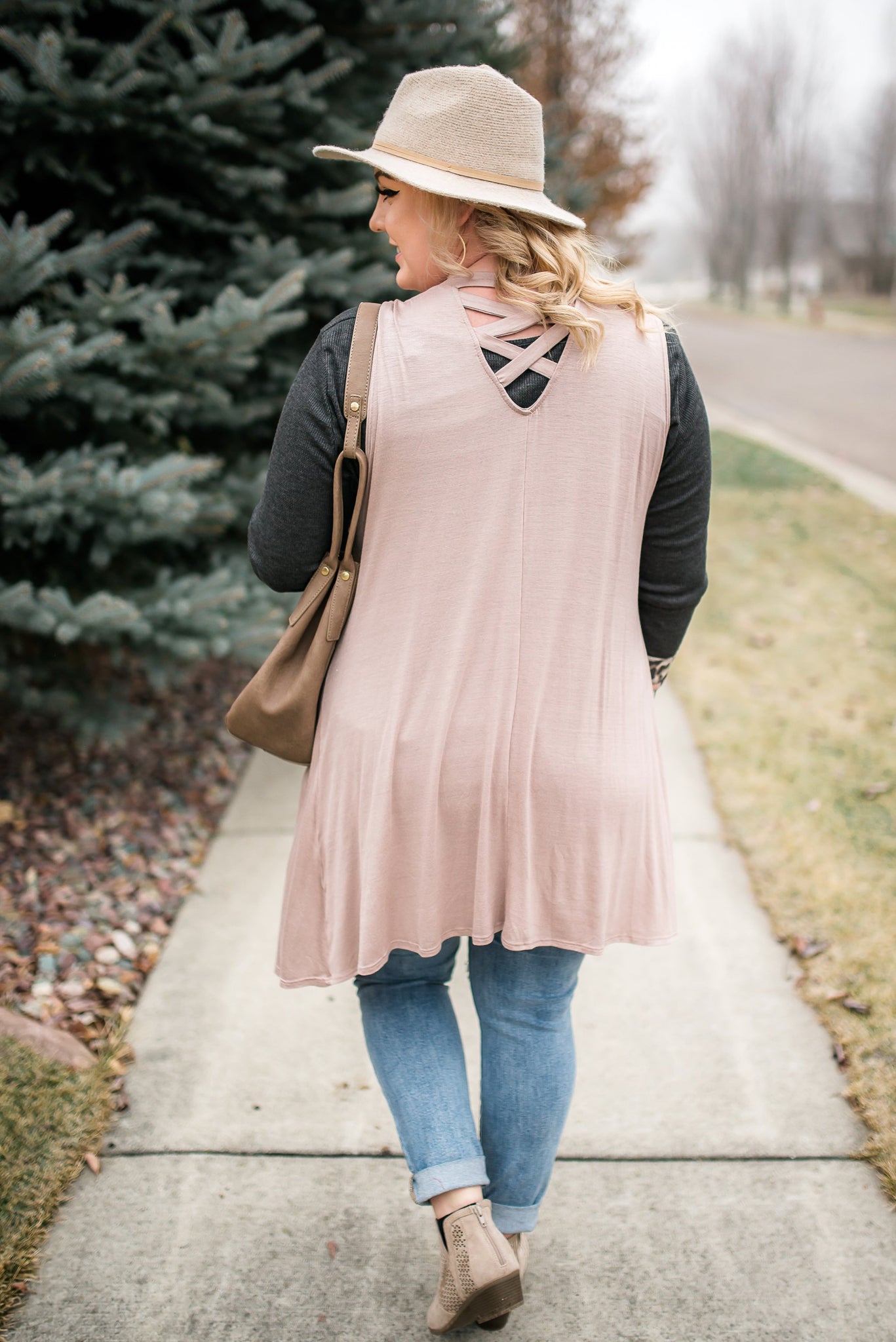 These are absolutely some of our favorite pieces to layer with, when you want to add a little flair to your outfit. We love the trendy criss cross cutout in the back and the length is just right for dresses or to pair with jeans and boots.