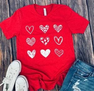 Help give out lots of love with this adorable tee with unique and different hearts printed on bella canvas.