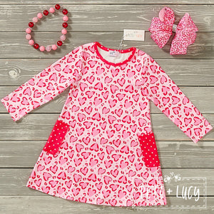 Treat your little girl to the cutest dress around - Lovely Leopard Girl! This oh-so-sweet dress features a fashionable leopard and heart detail, pockets for all her stunting stuff, and all the pinks she desires to make her feel like a girly-girl! (Sounds purrrfect, doesn't it?)