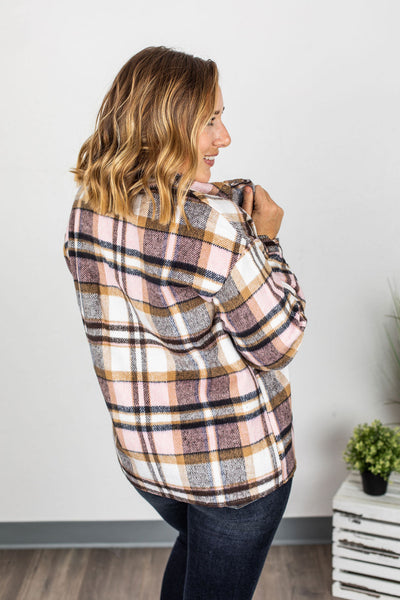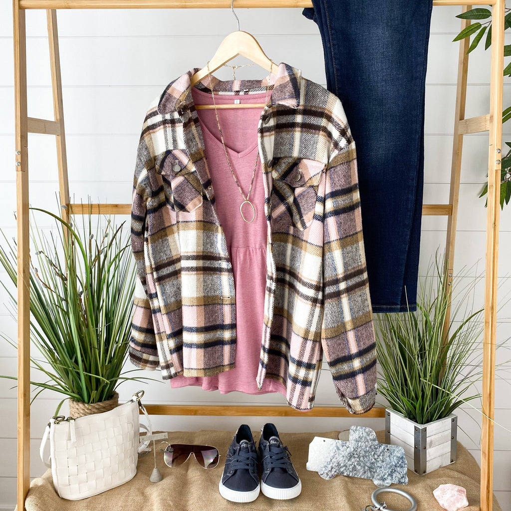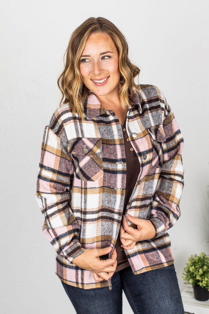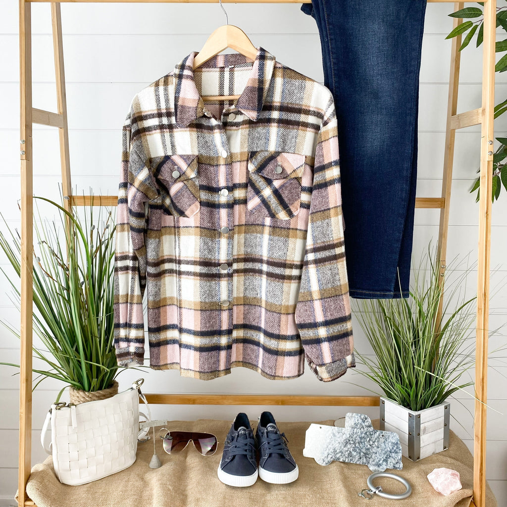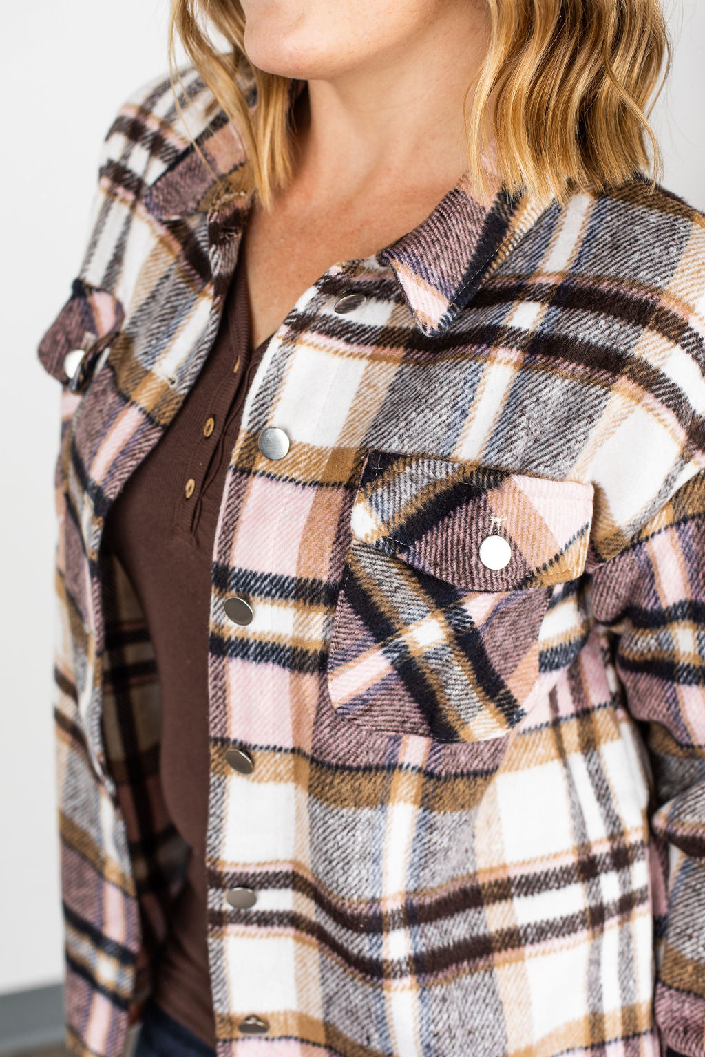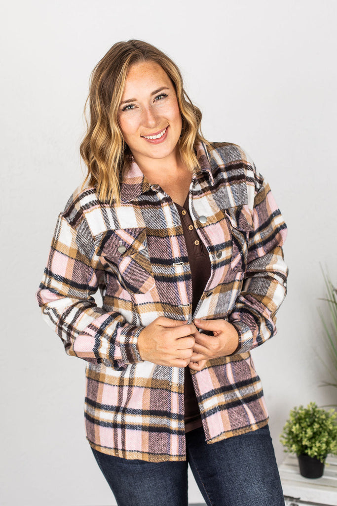 IN STOCK Molly Plaid Shacket - Pink and Brown FINAL SALE