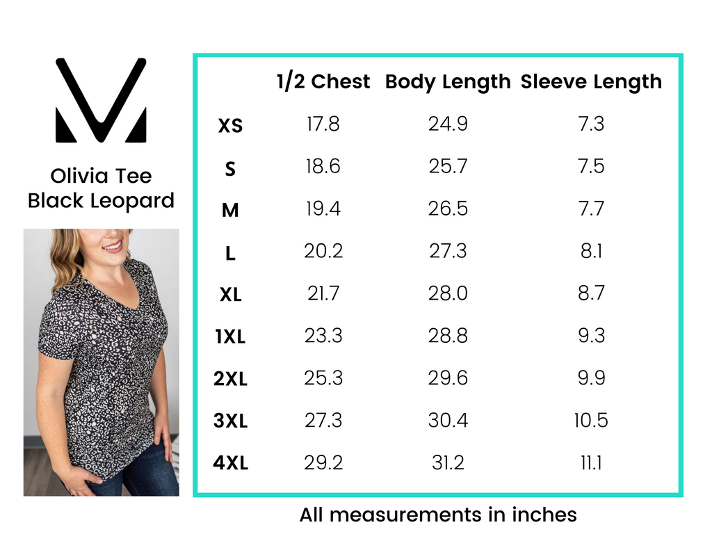 This Olivia tee is lightweight and stretchy. This beauty runs true to size, and has a cute v-neck thats not too deep so its flattering on everyone!