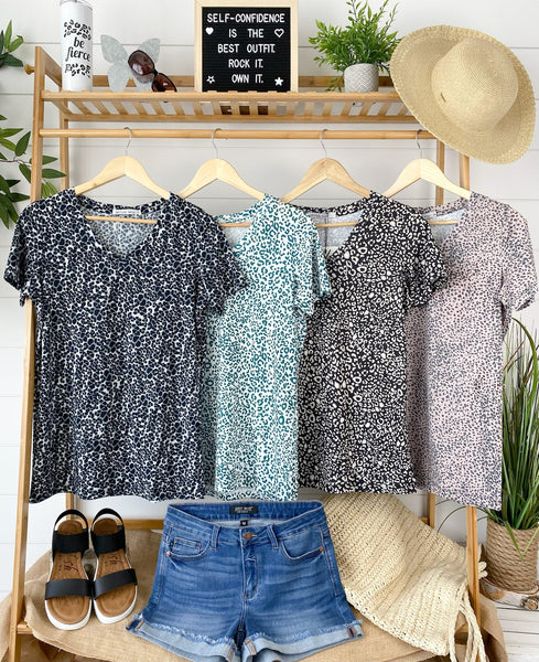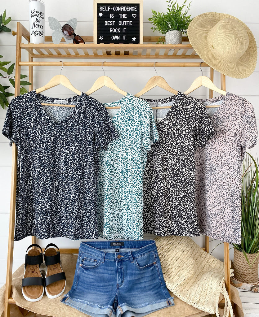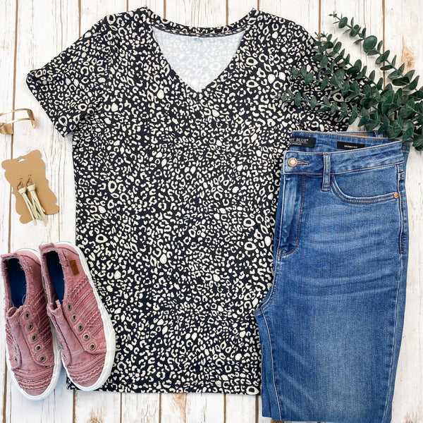 IN STOCK Olivia Tee - Black and Tan Leopard FINAL SALE