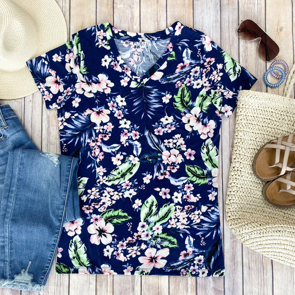 IN STOCK Olivia Tee - Tropical Blue Floral FINAL SALE