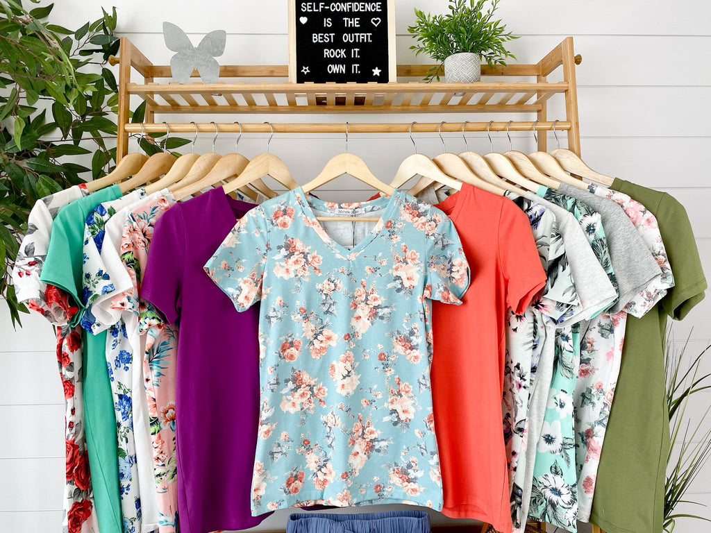 This Olivia tee is in a new and VERY stretchy fabric that will keep you cool this summer! This fabric has great stretch and is very soft. This beauty runs true to size, and has a cute v-neck that's not too deep so its flattering on everyone!