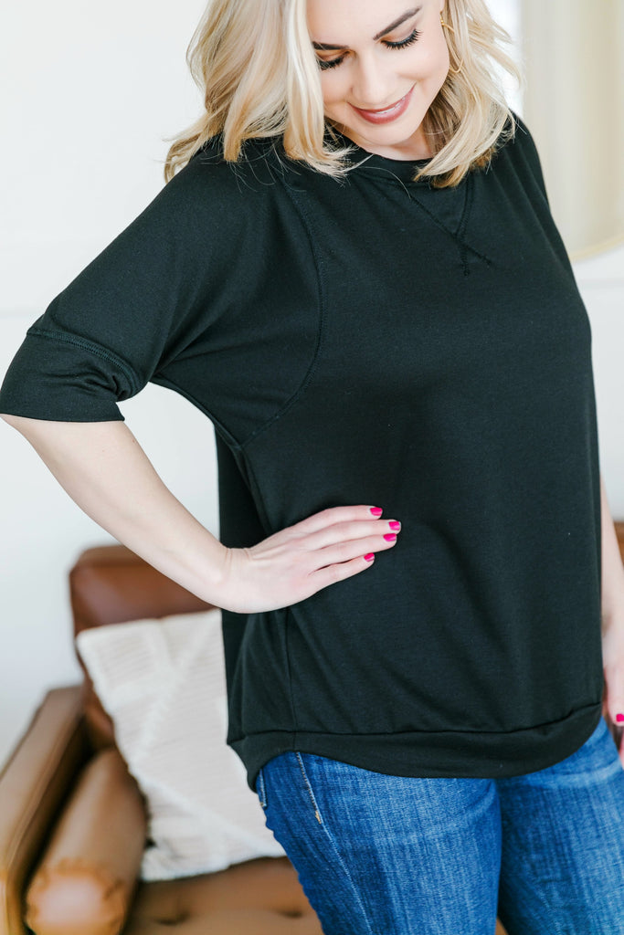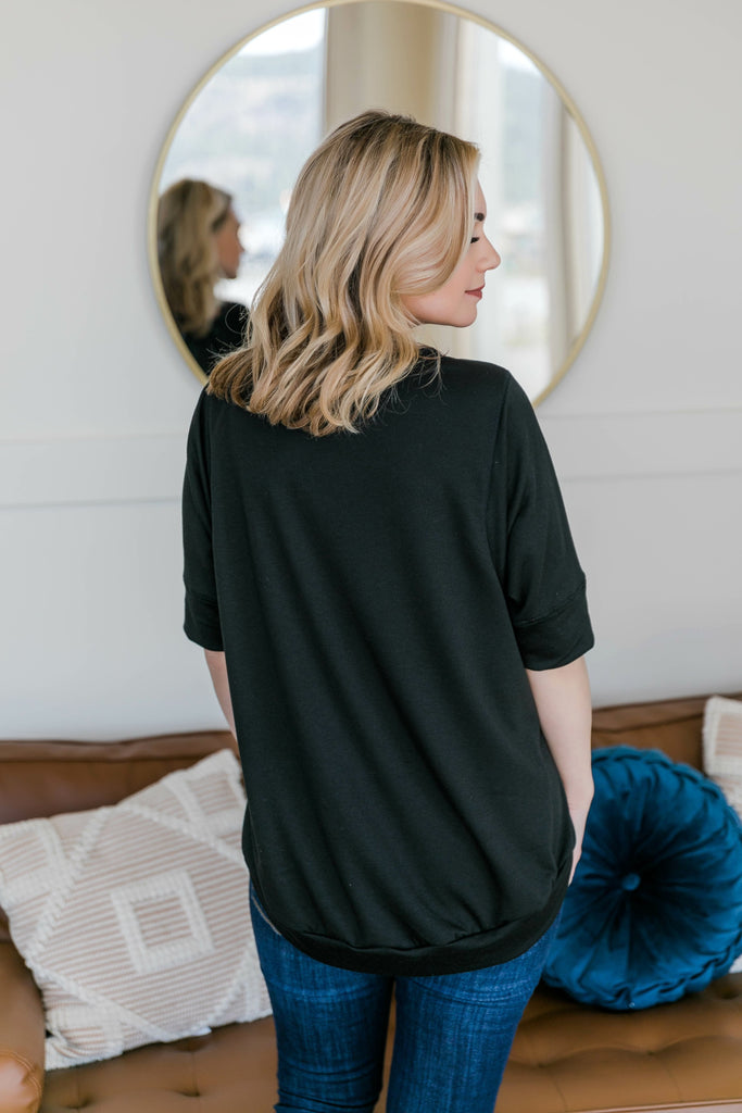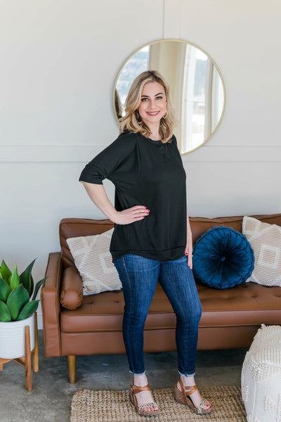 A little basic, a little trendy, this top will be so easy to pair this season and for seasons to come. We firmly believe that a closet can never contain too many black pieces.