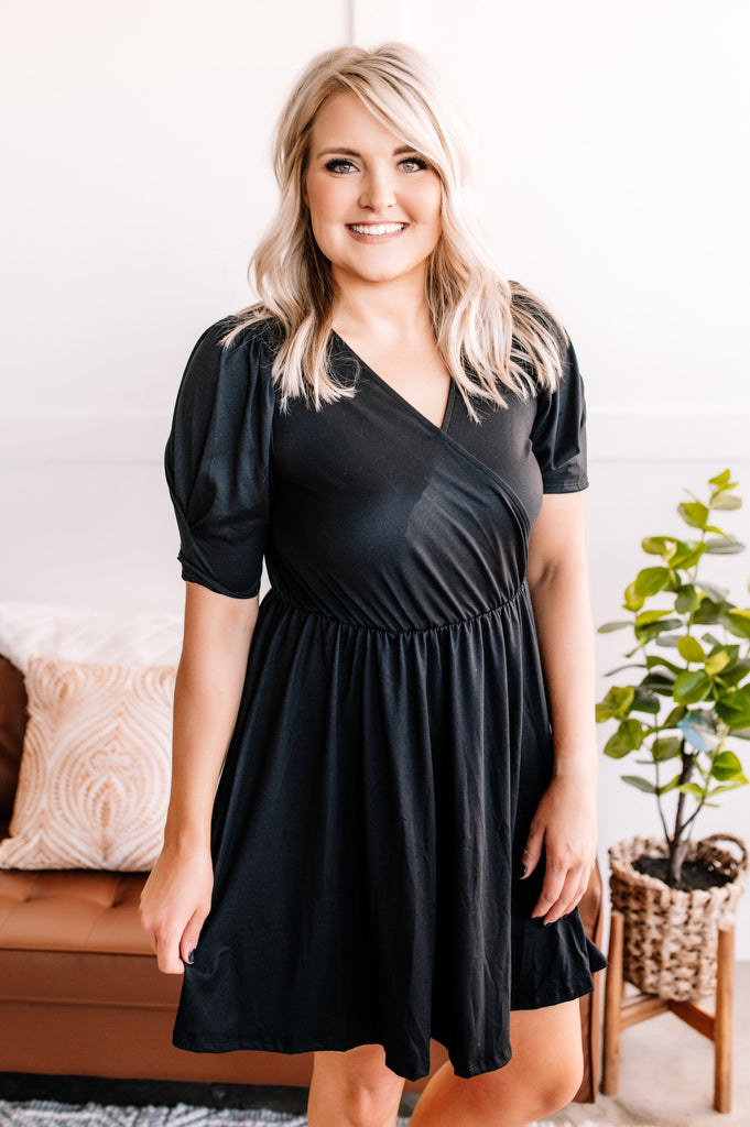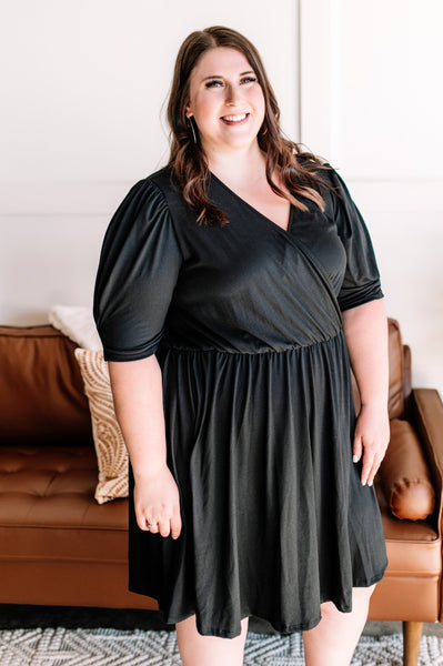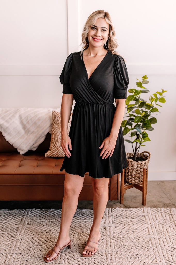 OUTLET Keeping Secrets Surplice Dress In Soft Black