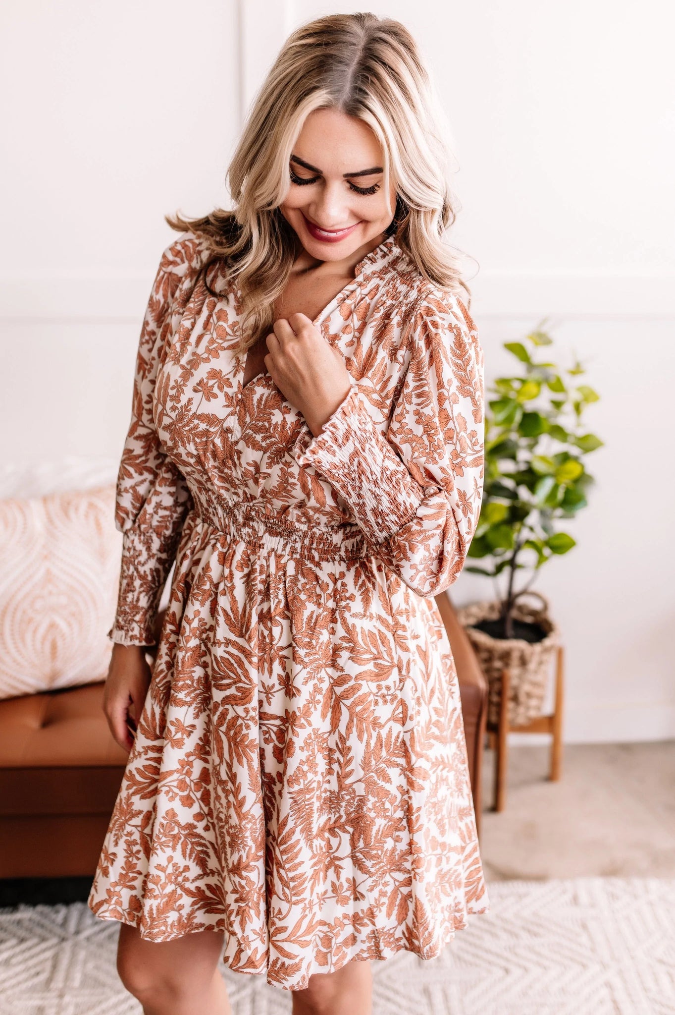 OUTLET Leaves Of Change Button Front Dress In Amber