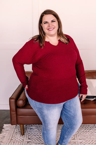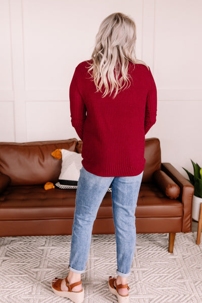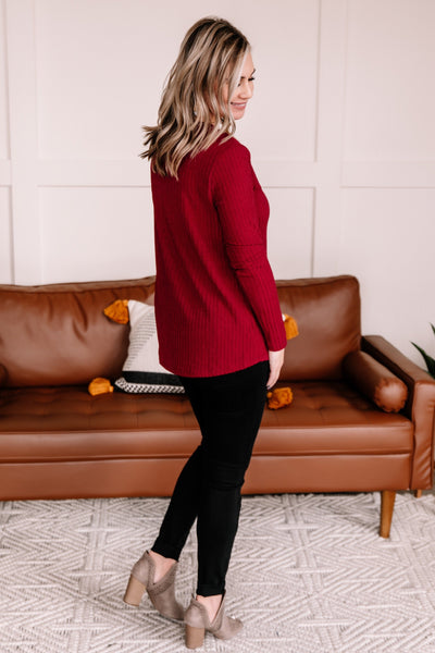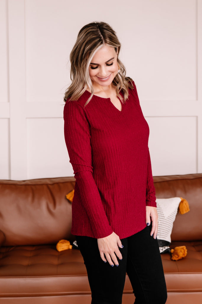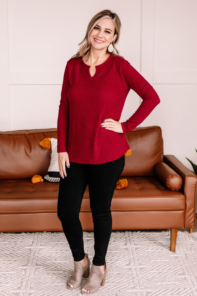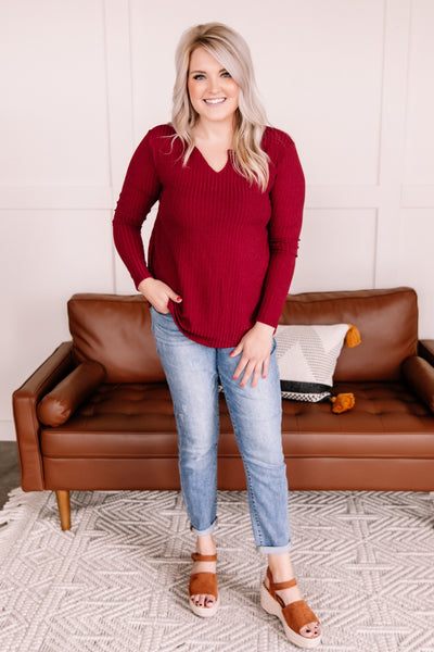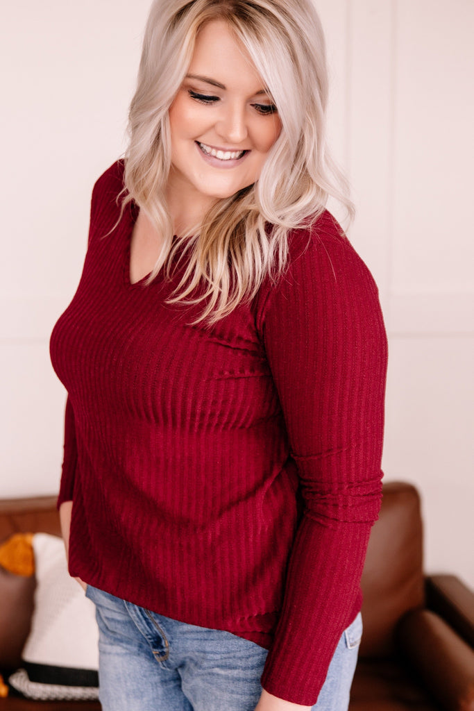 Sweeter than sugar, this top will be the perfect piece to wear to your holiday occasions this season. The color is truly exceptional and that sweater knit is just the right weight to ward off the upcoming cooling temperatures.