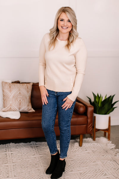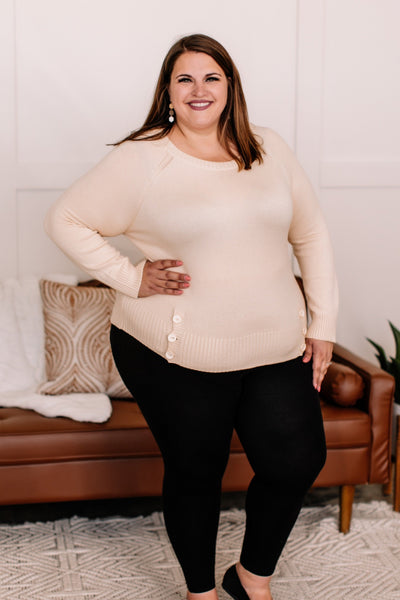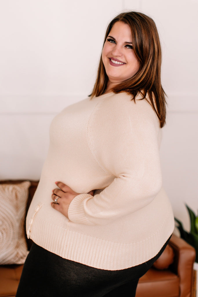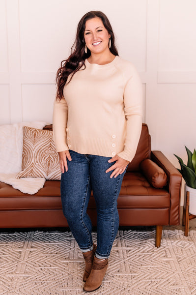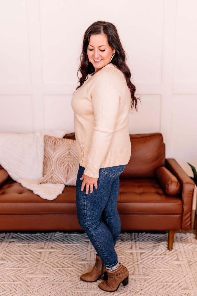 OUTLET - Take A Knit Sweater with Button Detail In Cream - M/L