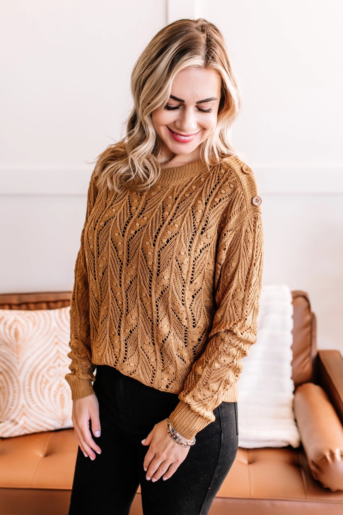 OUTLET That’s A Latte Knit Sweater In Golden Acorn