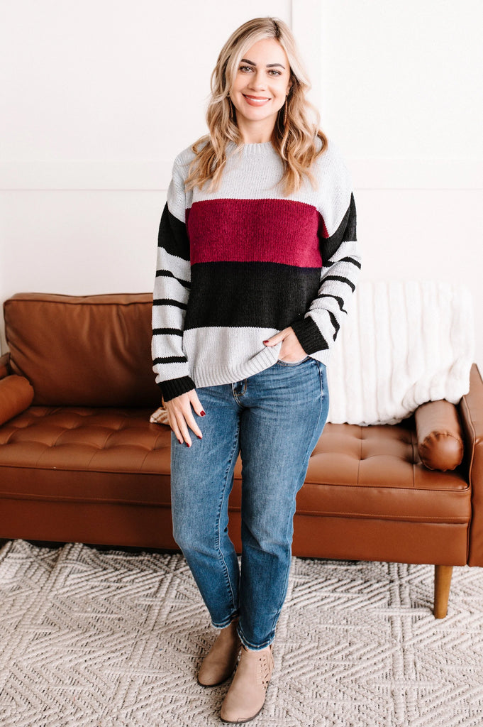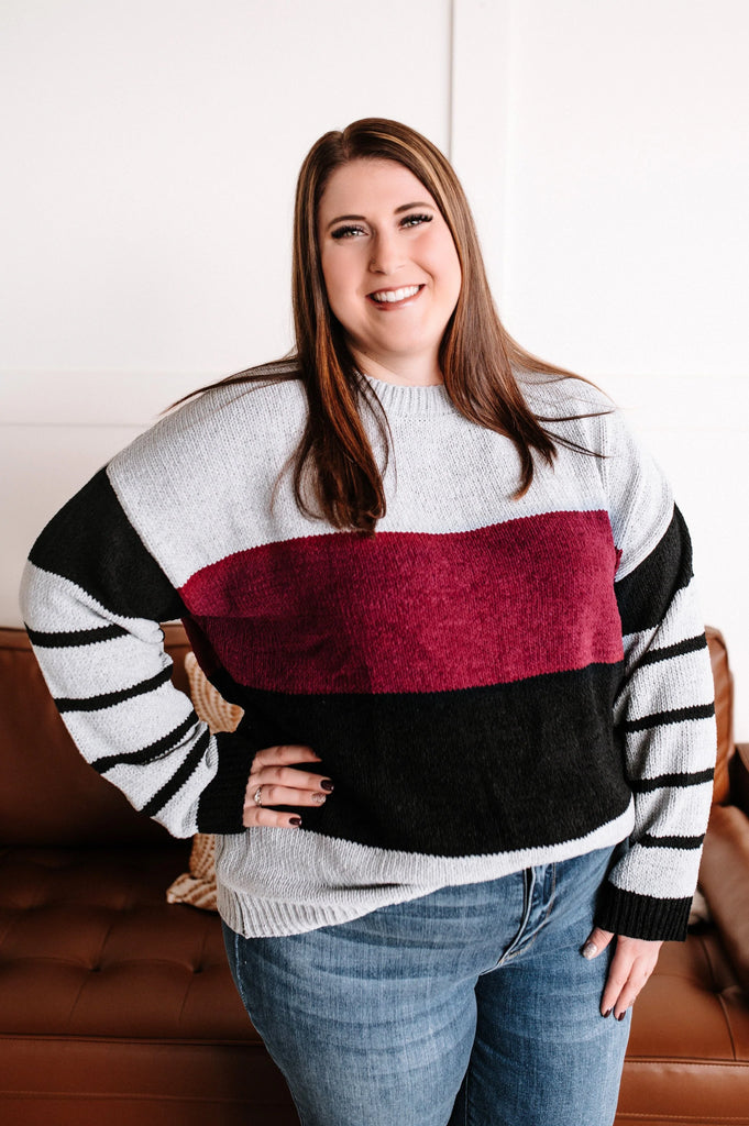 OUTLET Yin and Yang Contrasting Sleeve Chenille Sweater
