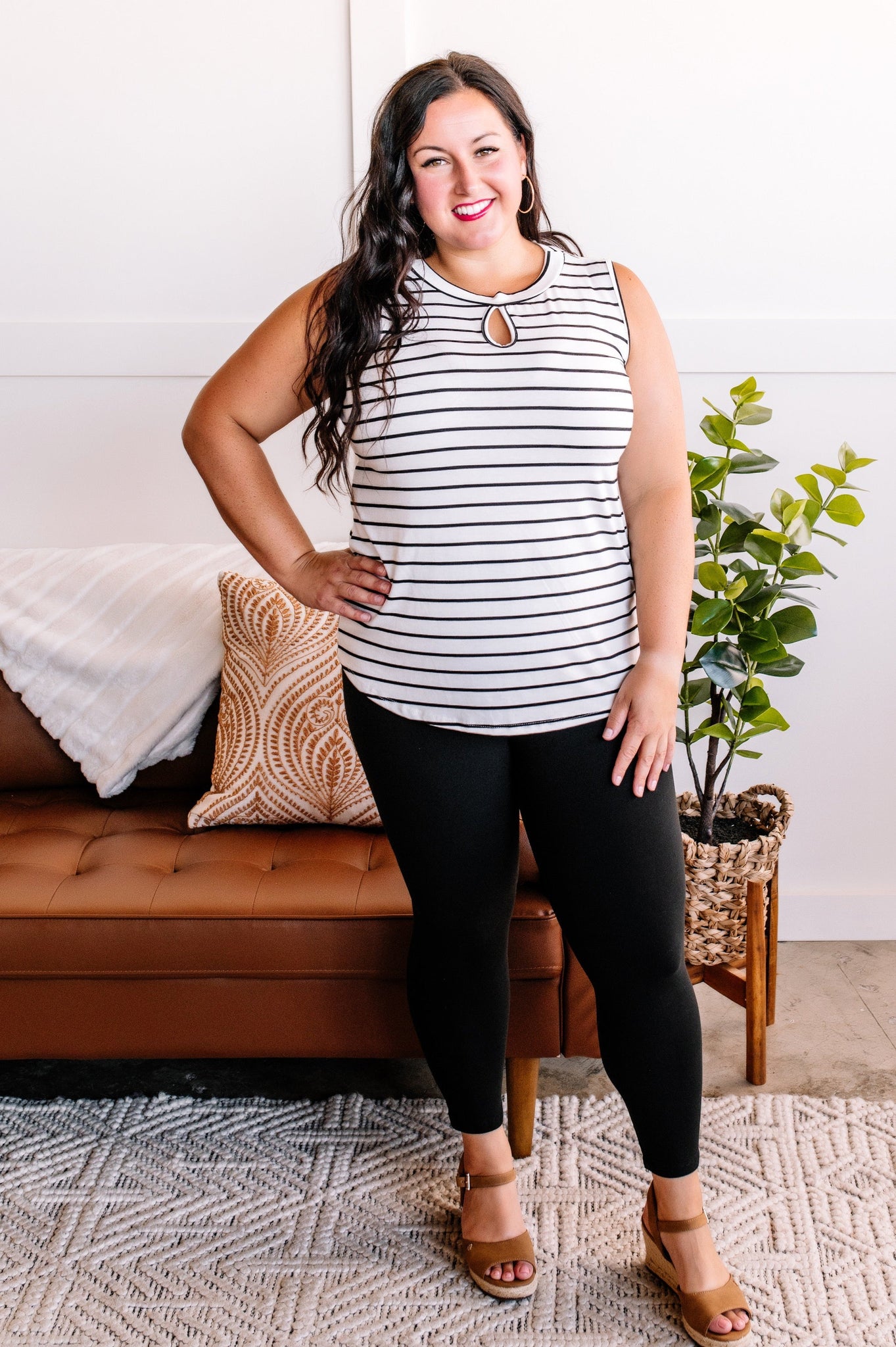 OUTLET You Hold The Key Striped Keyhole Sleeveless Top