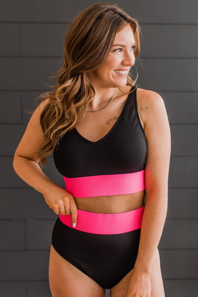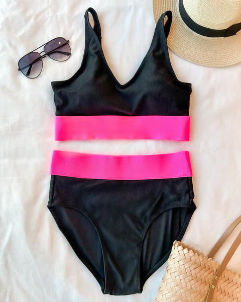 Ray Of Sunshine Swim Bottoms- Black & Neon Pink