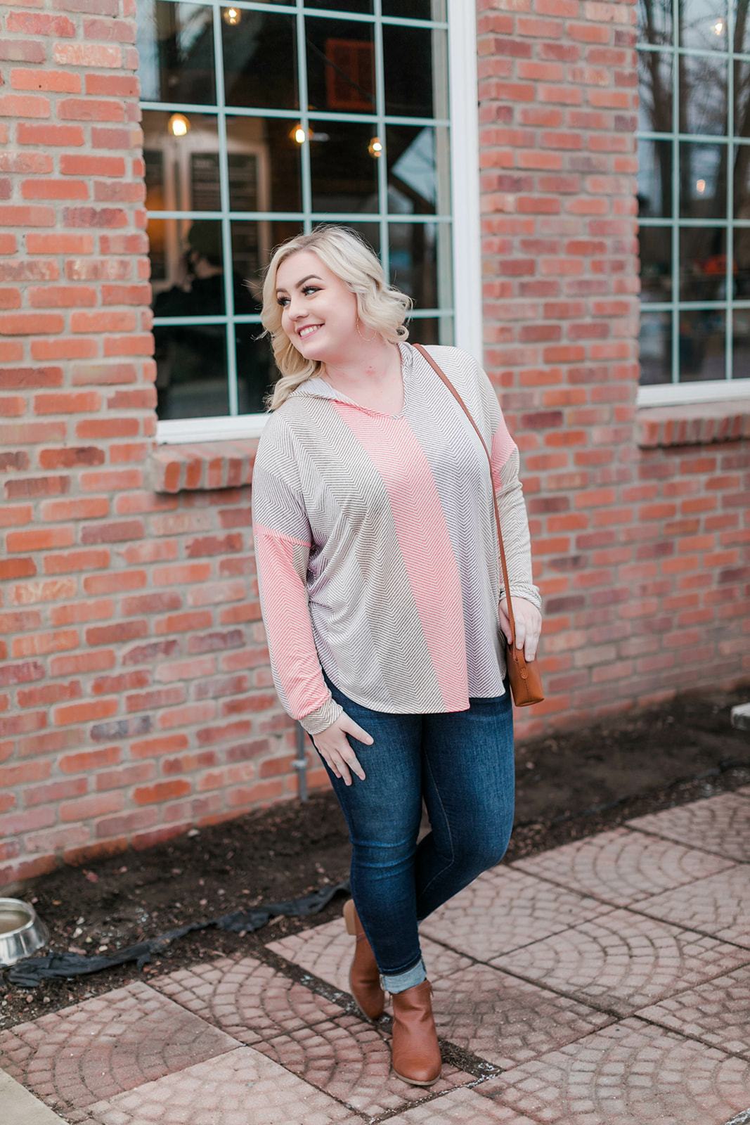 A pinch of casual with a dash of chic! Throw in a fun hood detail, the cheerful print and this top is the perfect recipe. Pair it with our Frayed Around the Edges Denim jacket for a perfect casual outing ensemble.