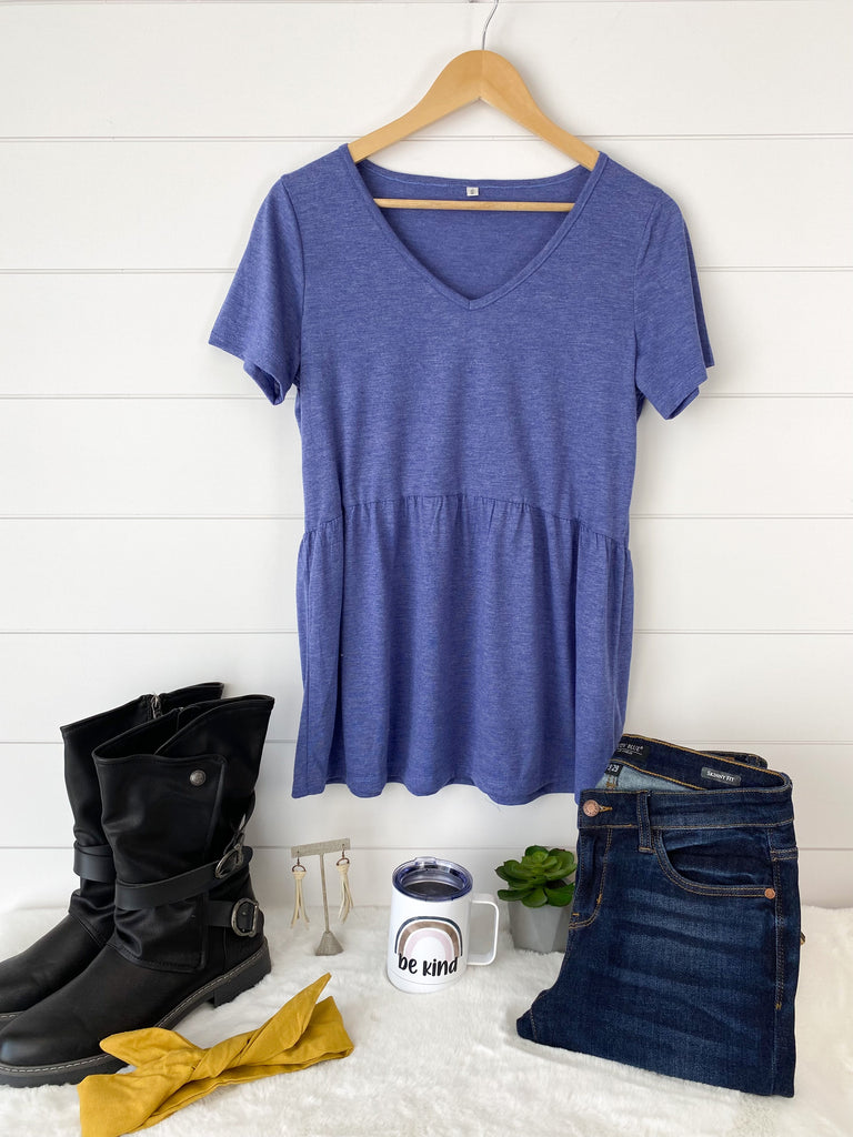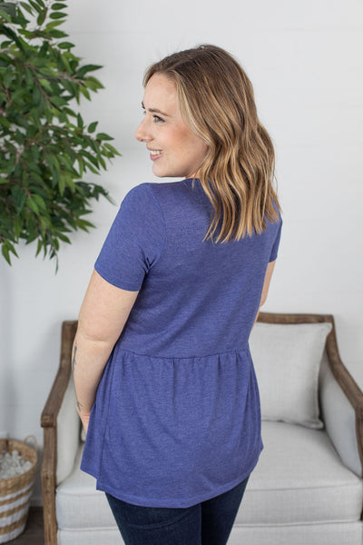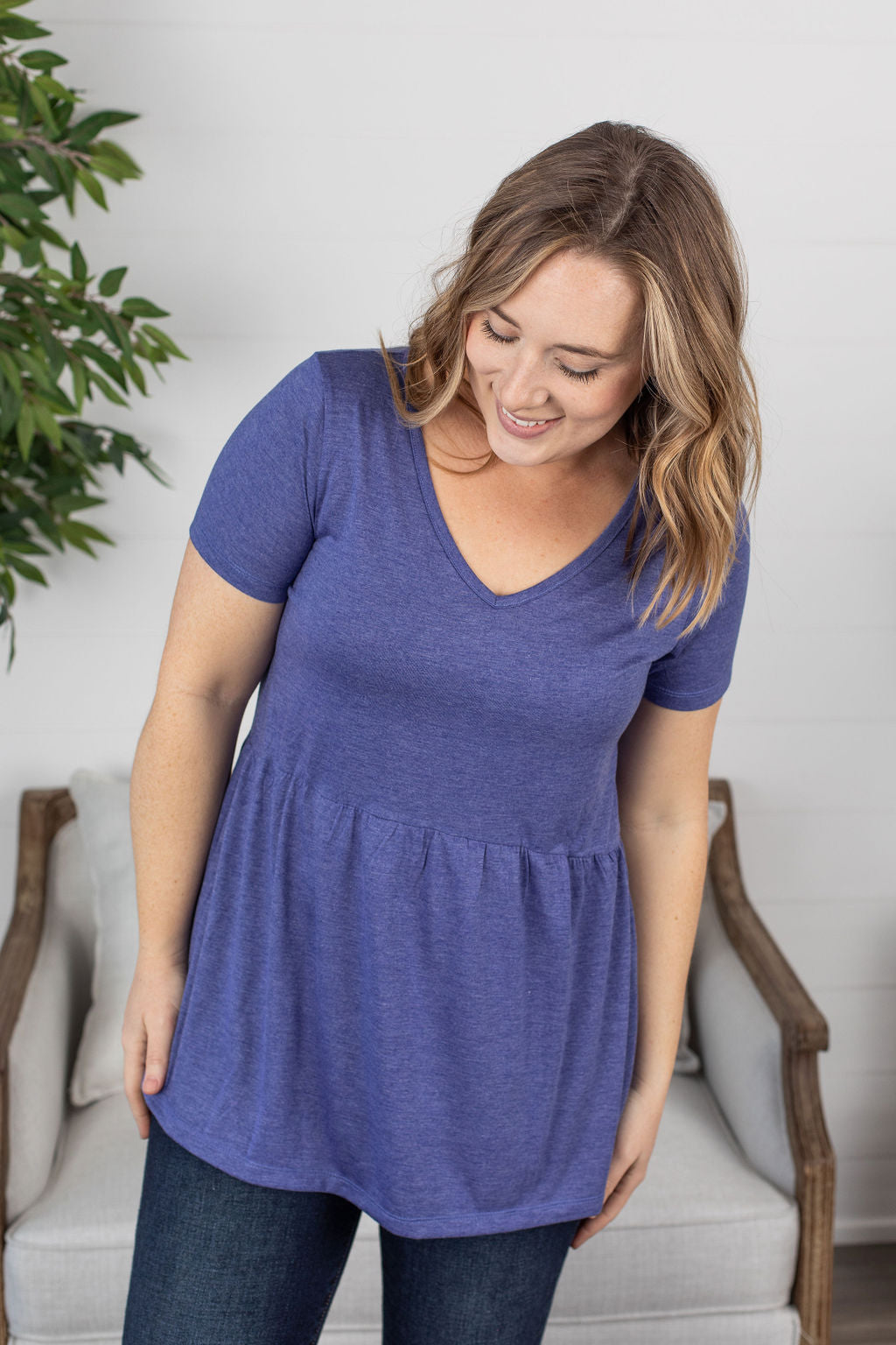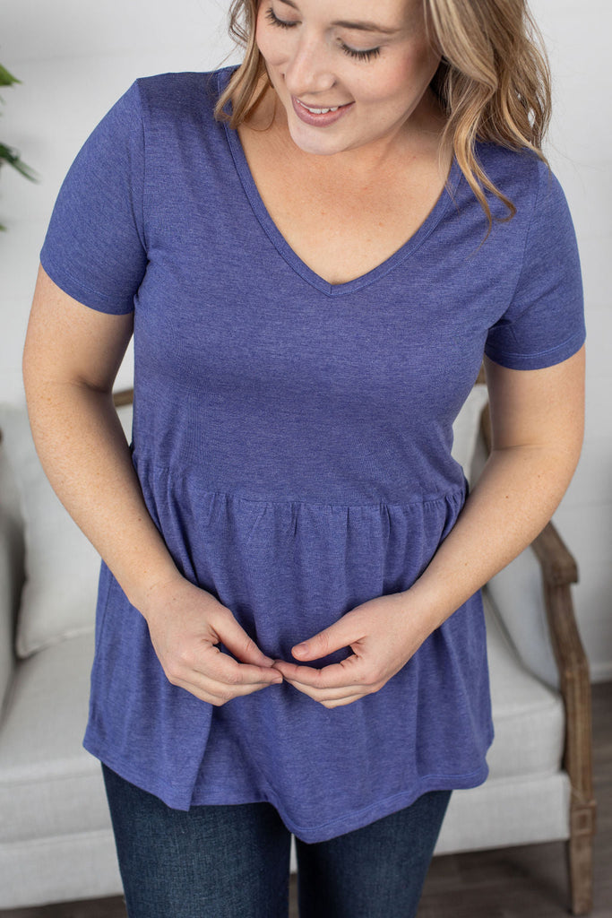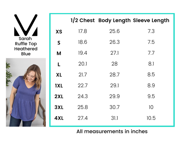 IN STOCK Sarah Ruffle Top - Heathered Blue FINAL SALE