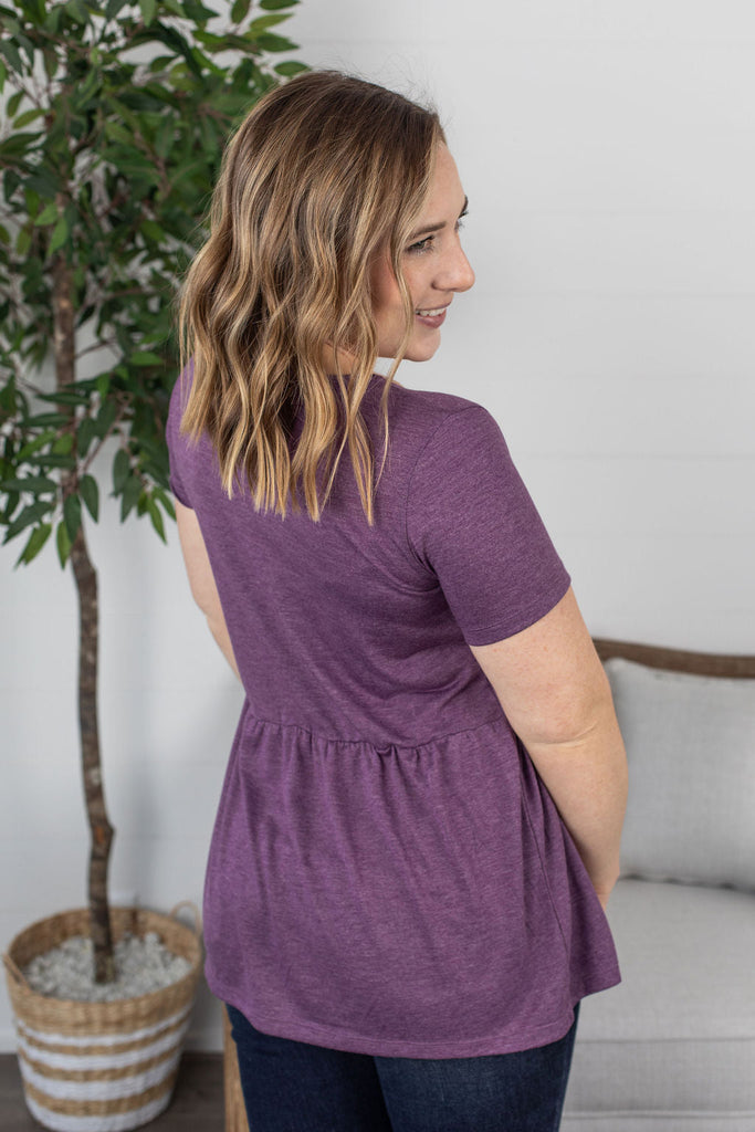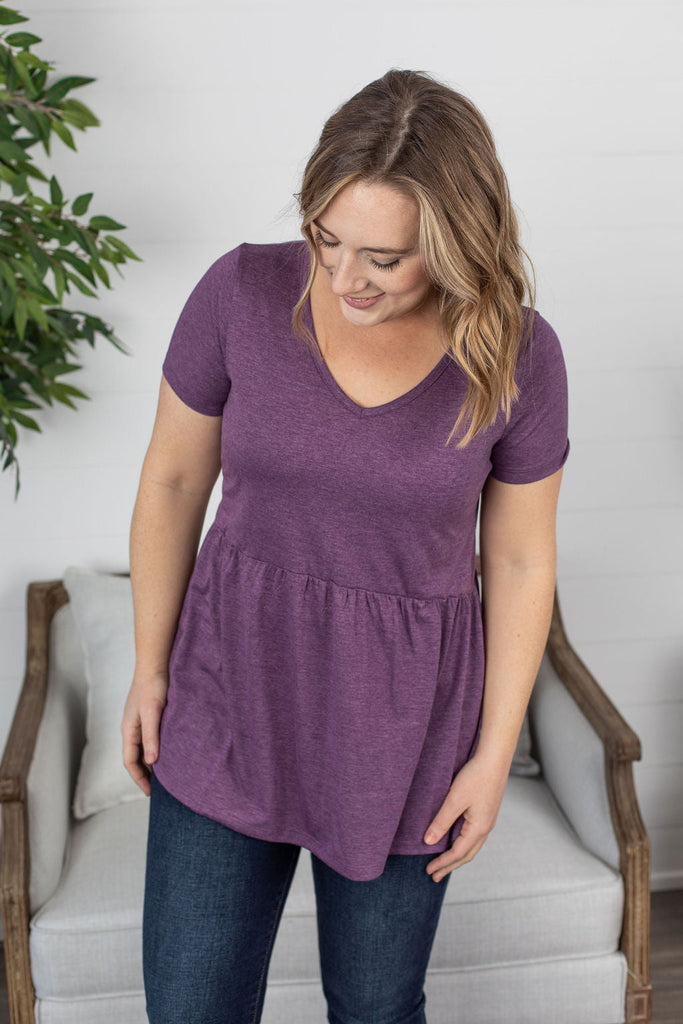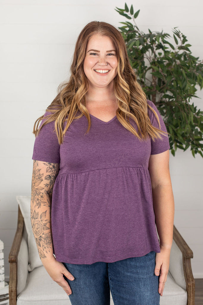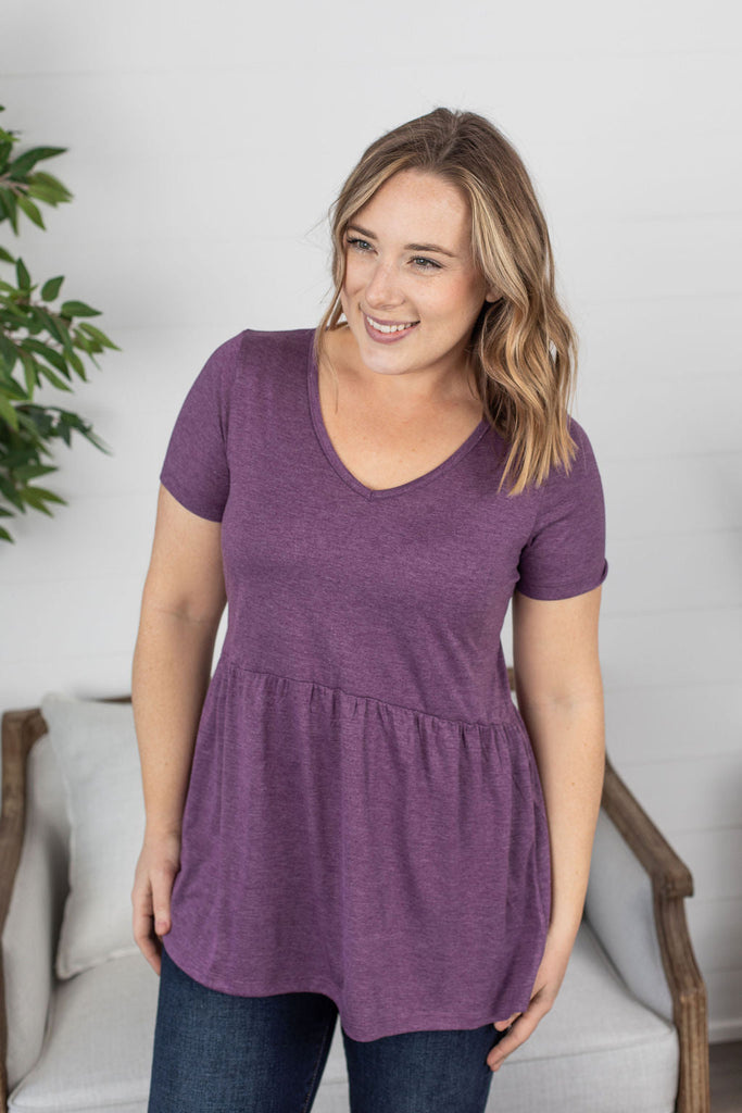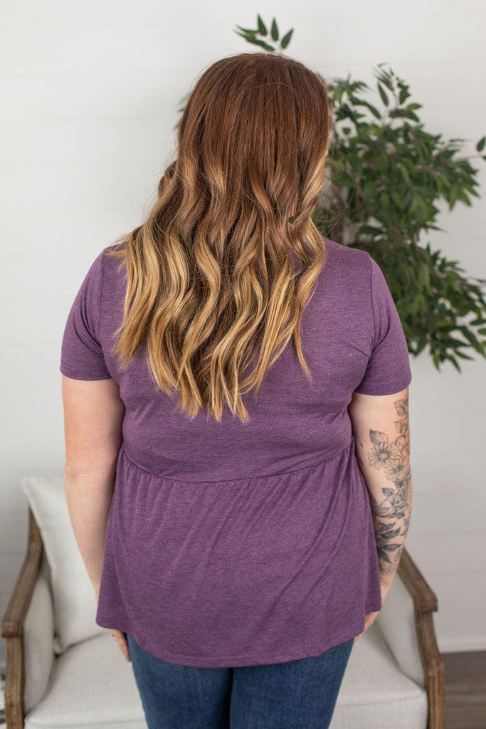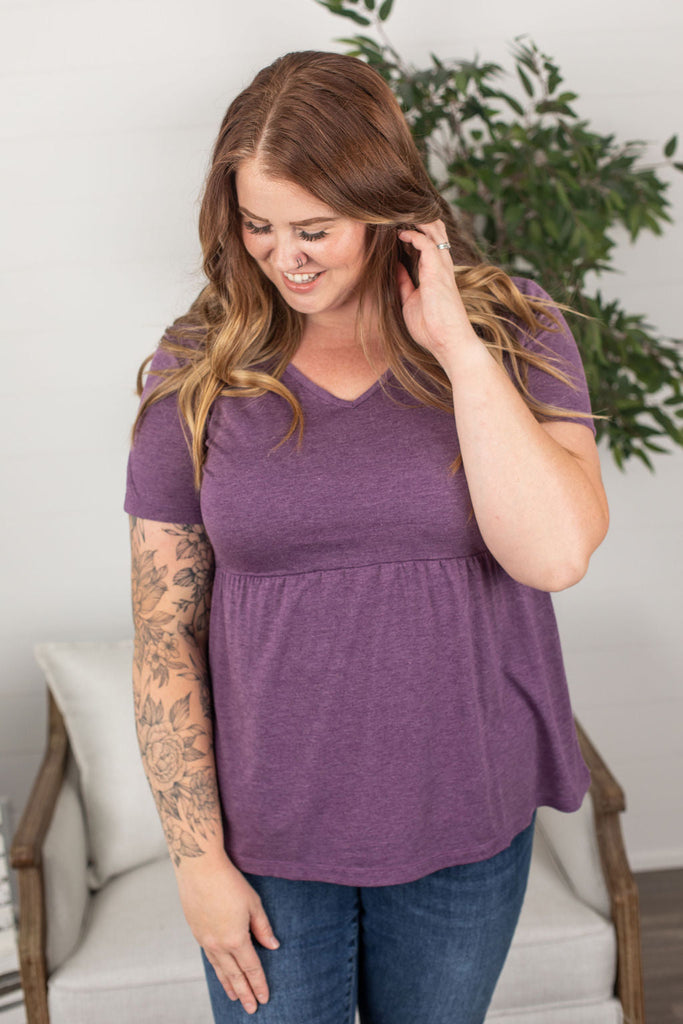 IN STOCK Sarah Ruffle Top - Heathered Purple FINAL SALE