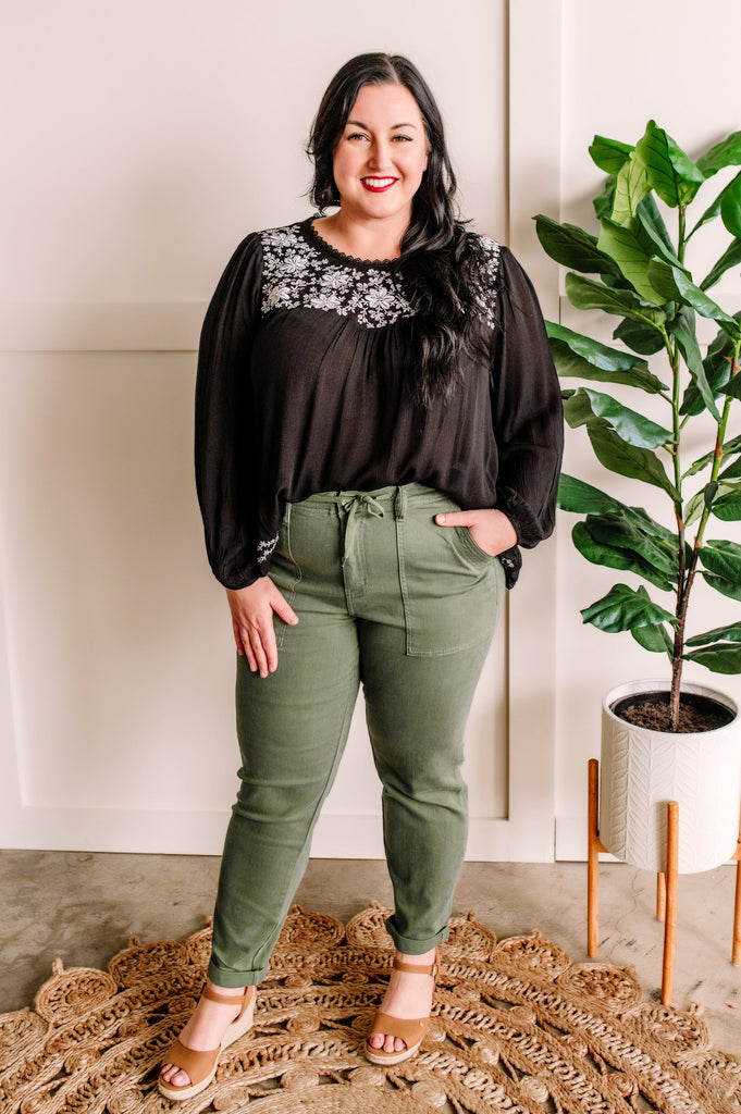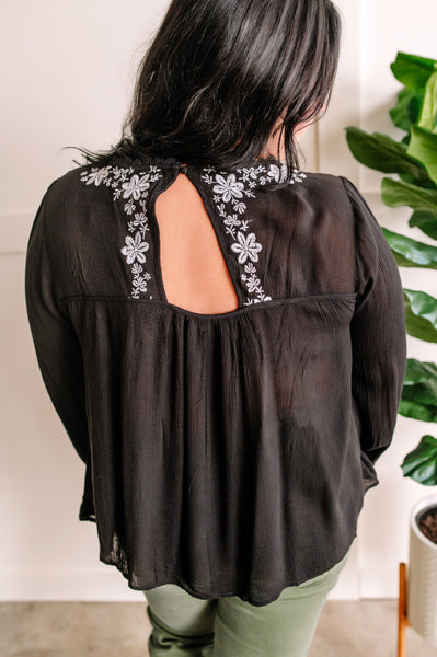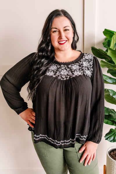 Savanna Jane Black Blouse With Floral Embroidery